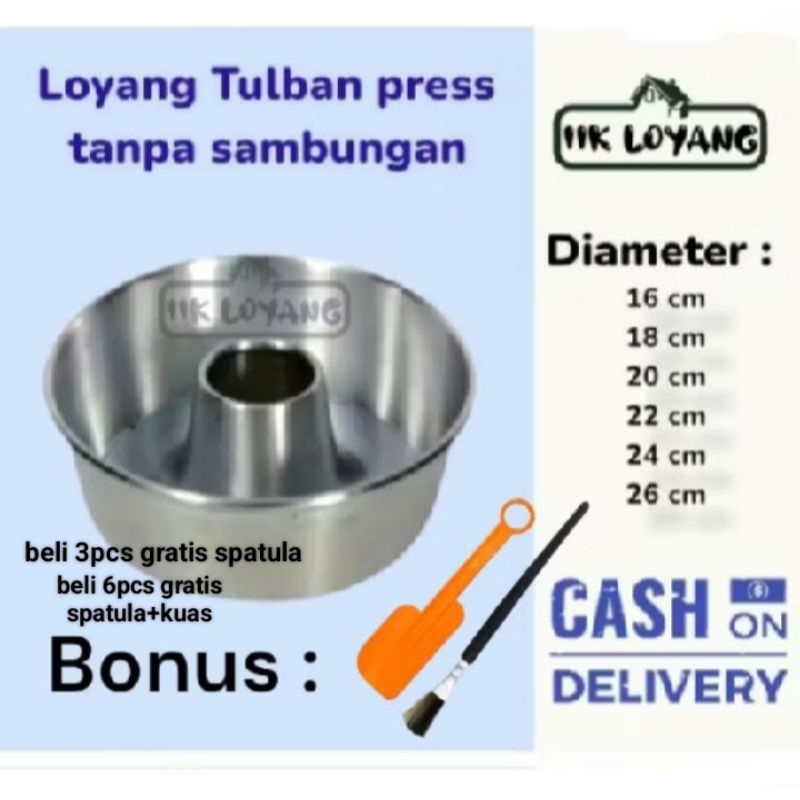 LOYANG TULBAN PRESS. UKURAN (16CM18CM20CM.22CM.24CM.26CM/)BAHAN ALUMINIUM TEBAL 08.. BELI 3PCS BONUS SPATULA /BELI 6 BON