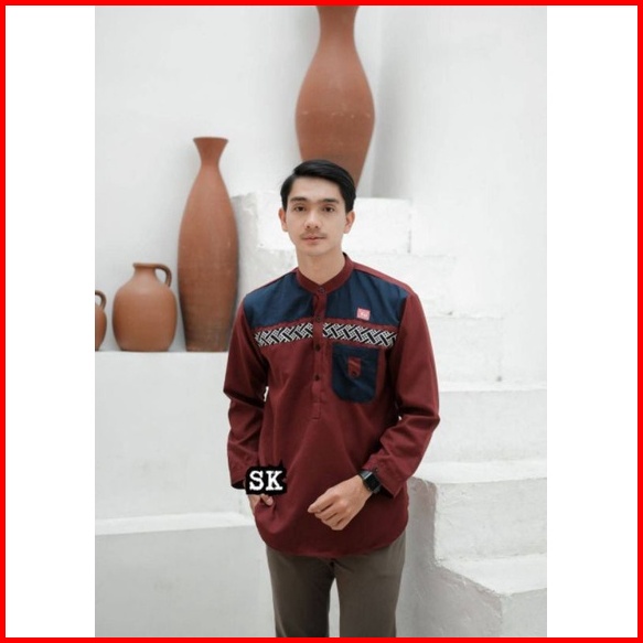 Baju Koko Pria Muslim Terbaru Kemeja Muslim Polos Terlaris Bestseller Kombinasi Batik Exclusive
