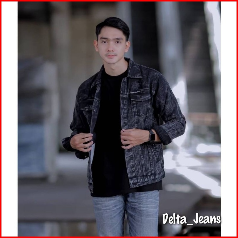 Jaket Jeans Pria Jaket Jumbo Hitam Jaket Denim Big Size Sandwash