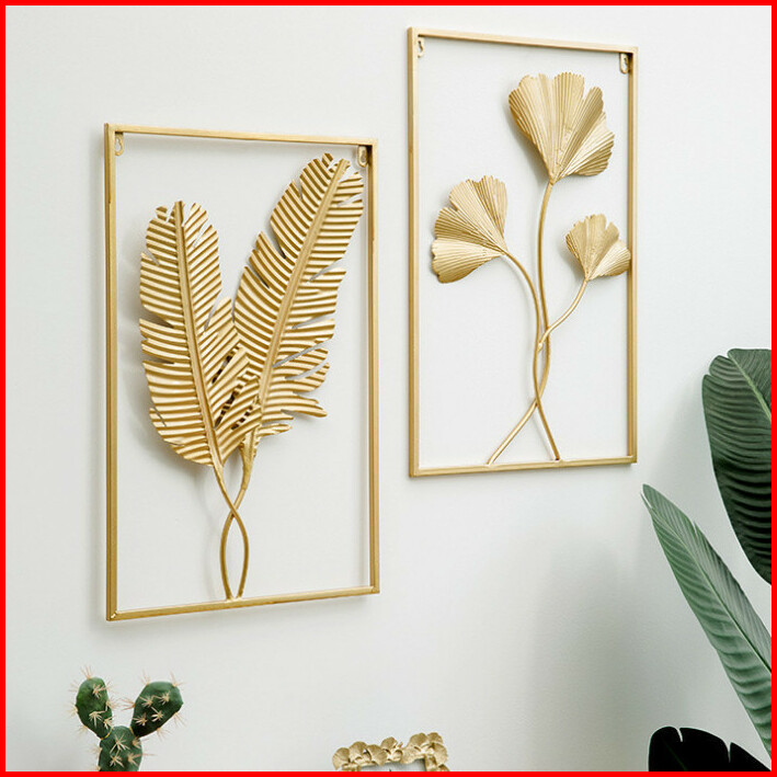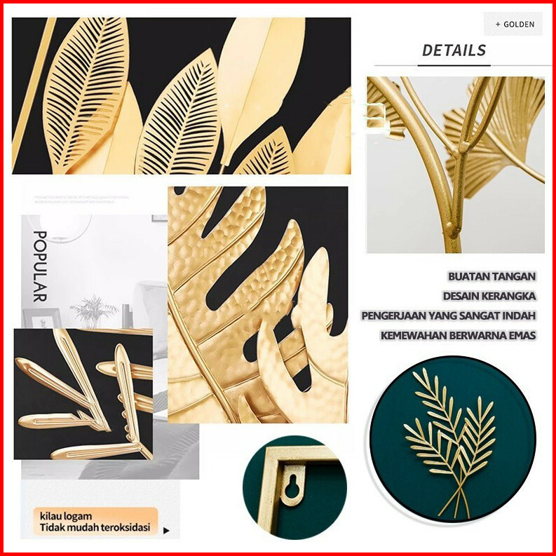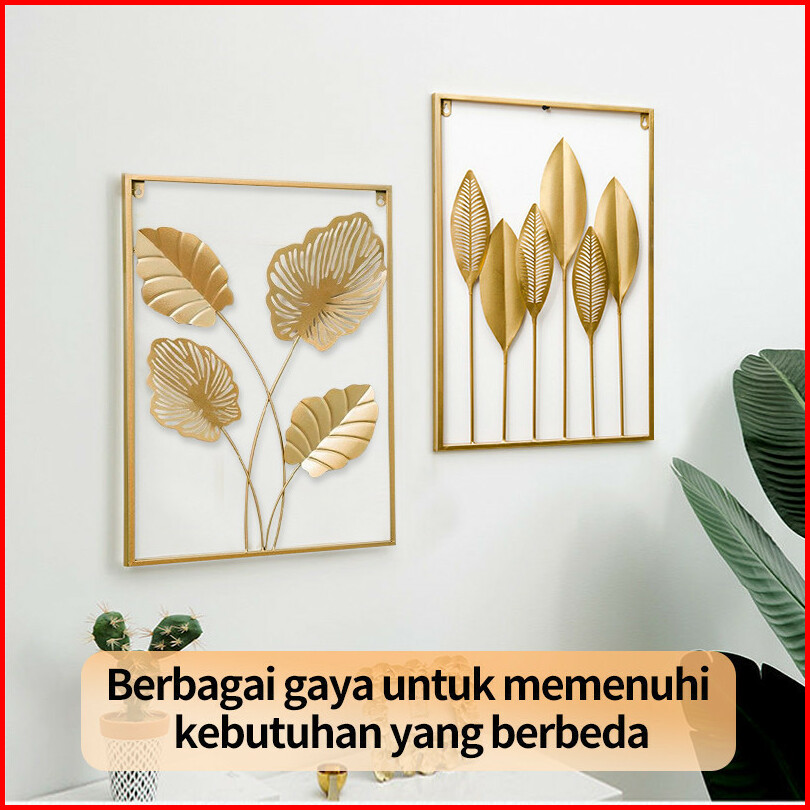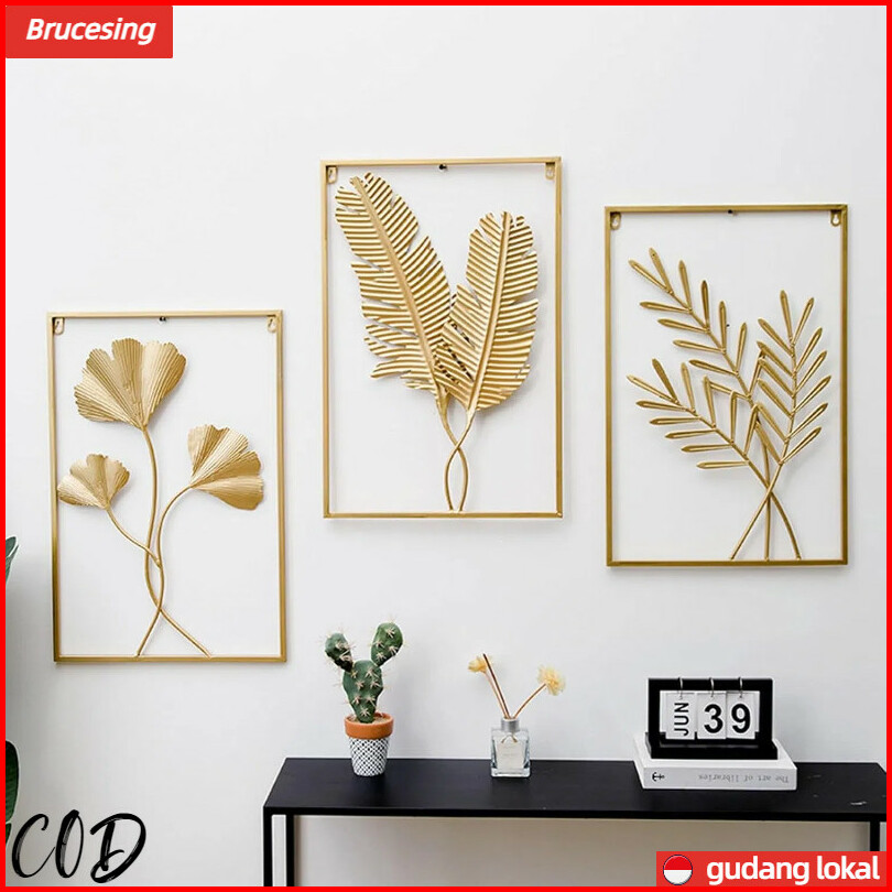 Lukisan Dekoratif Wall Decor Hiasan Dinding Aesthetic Frame Metal Daun Leaf Ginko Scandinavian Wall Decor Nordic Dinding