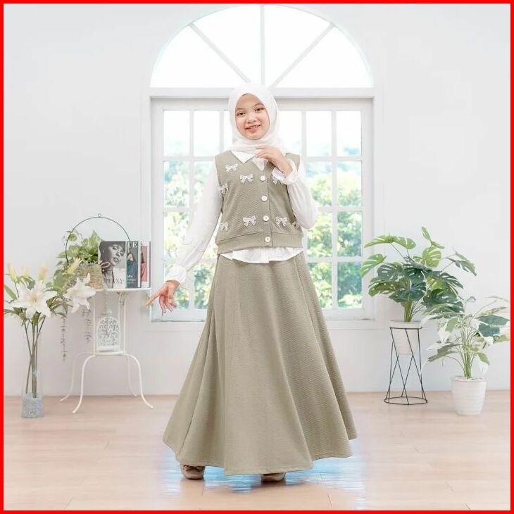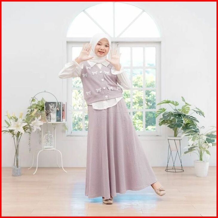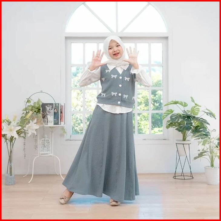 Akhira Set Kids 3in1 Setelan Rok Anak Perempuan Usia 8 9 10 11 12 Tahun One Set Anak Tanggung Bahan Knit Florencia Mix L