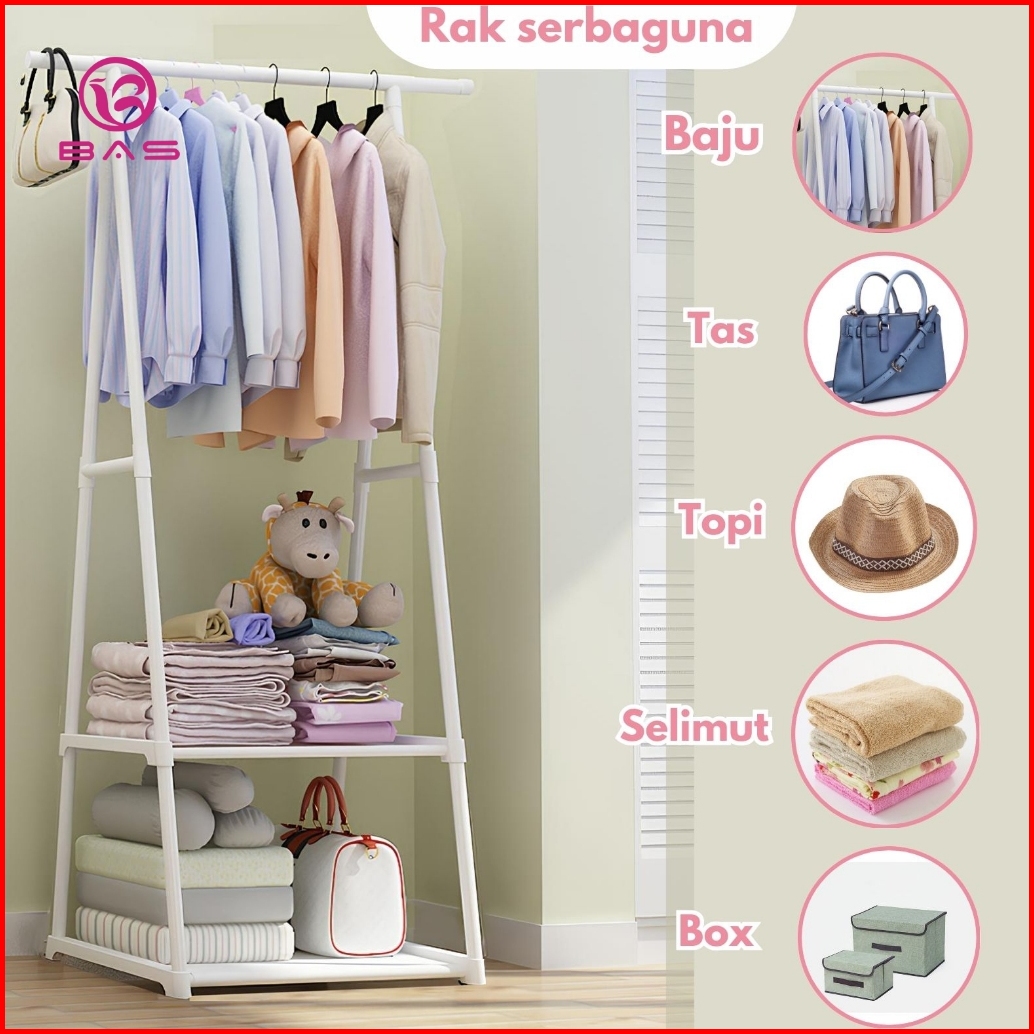 Bas Combo 3 In 1 Triangle Rak Baju Mutifunsi Rak Susun Serbaguna Dengan Roda Rak Sepatu 4 Tingkat