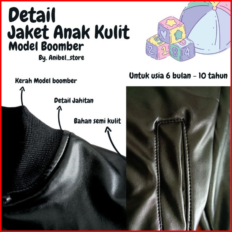 Jaket Anak Kulit Model Bomber Untuk Usia 6 Bulan - 10 Tahun Jaket Anak Bahan Semi Kulit
