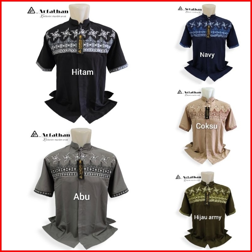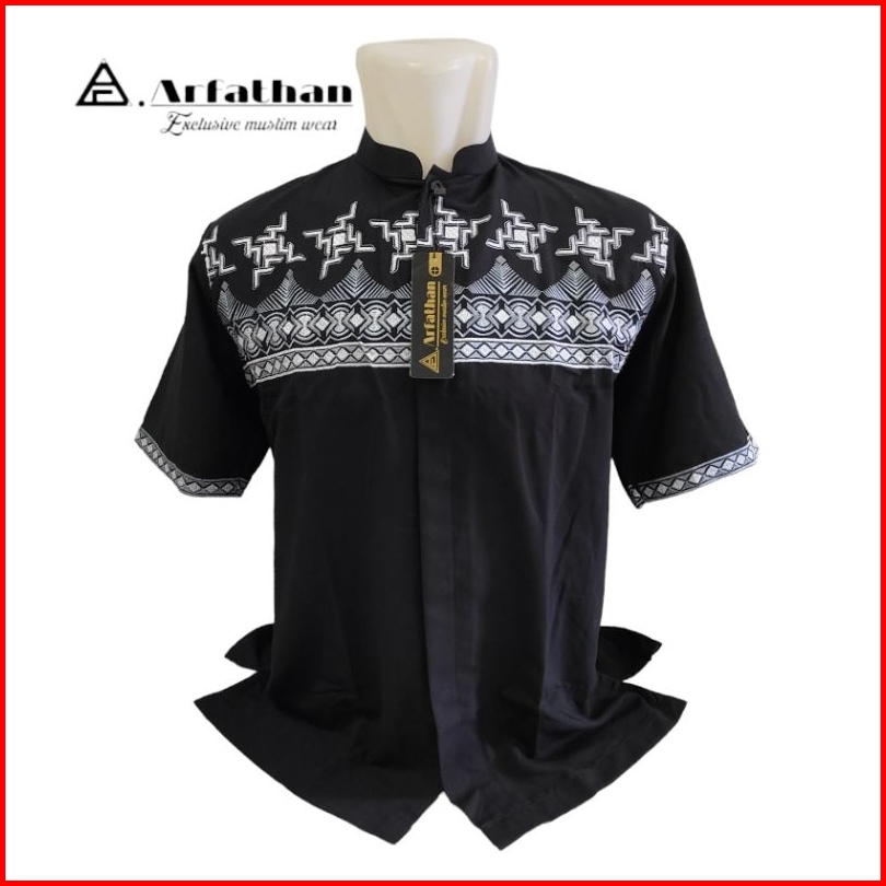 Baju Koko Bordir Lengan Pendek Terlaris Busana Muslim Pria Arfathan