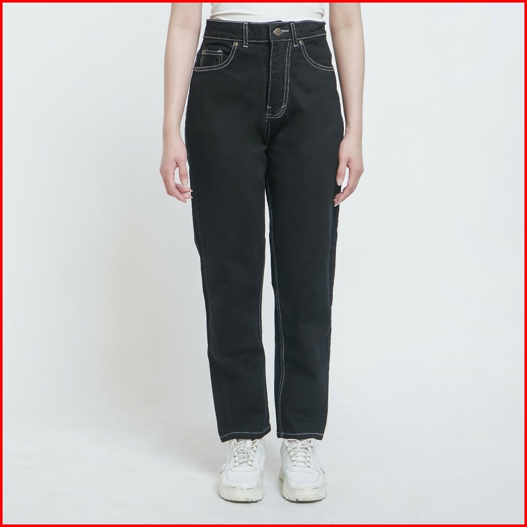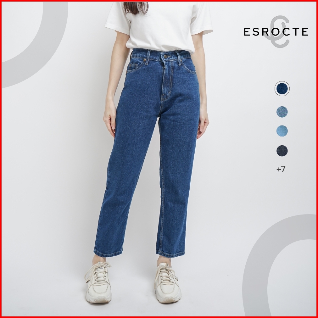 Esrocte Celana Rubber Boyfriend High Waist Mom Jeans Wanita P43 - 26-38 001