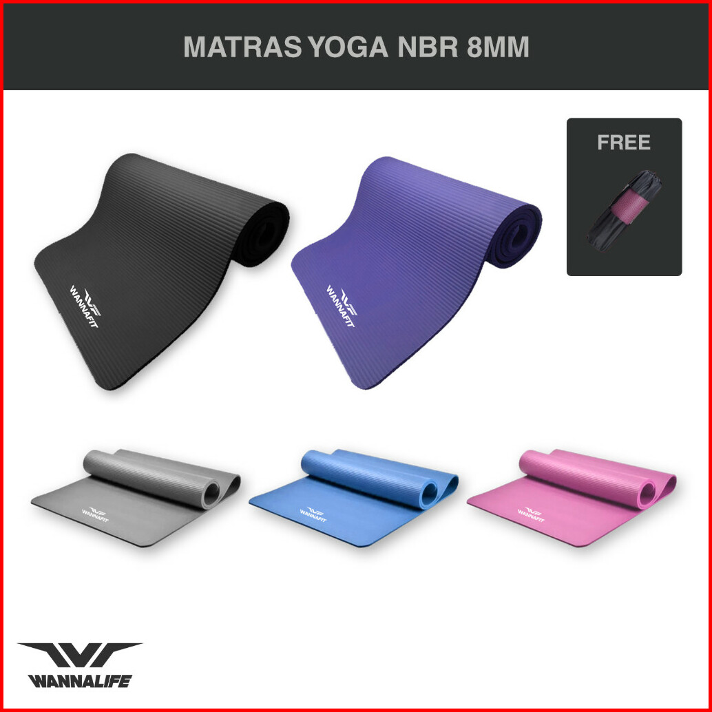 Matras Yoga 8mm Free Bag Wannafit Tebal Elastis Yoga Mat Senam 8mm Nbr Yoga Aerobic