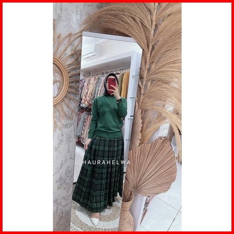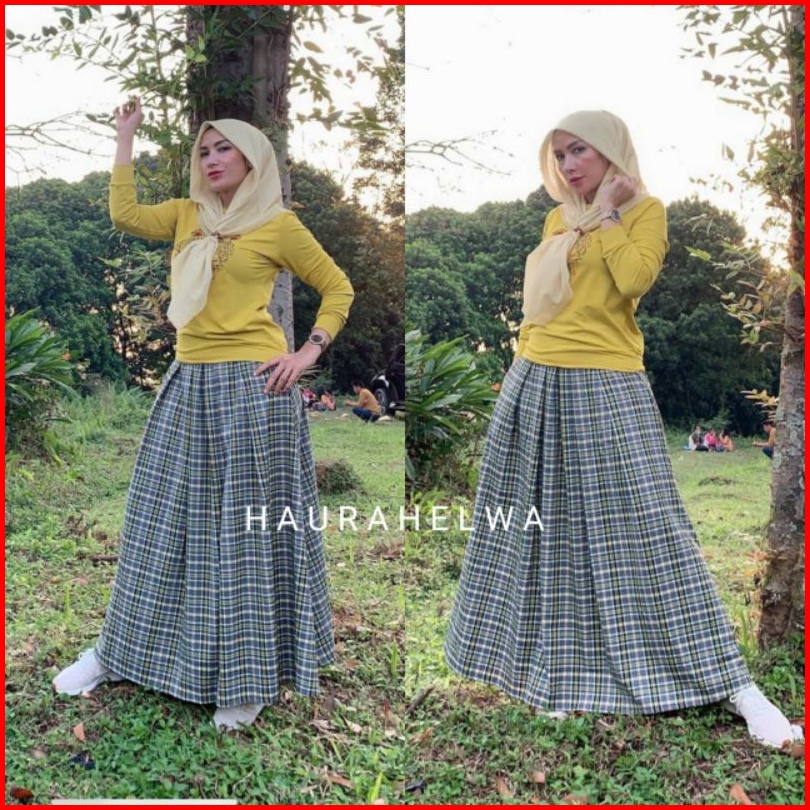 Rok Flanel Panjang 95cm Haurahelwa Rok Tartan Flanel Panjang