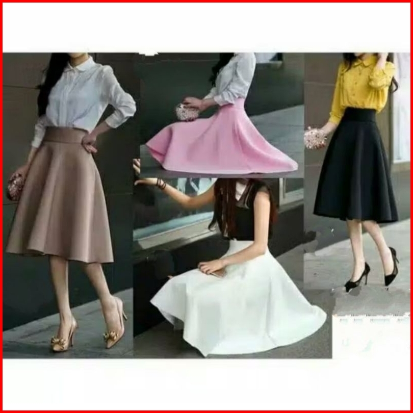 Karakorea Midi Flare A-line Skirt Rok Flare Rok Midi Rok Korea Skirt