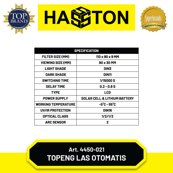 HASSTON TOPENG LAS OTOMATIS /AUTO DARK WELDING HELMET (4450-021)