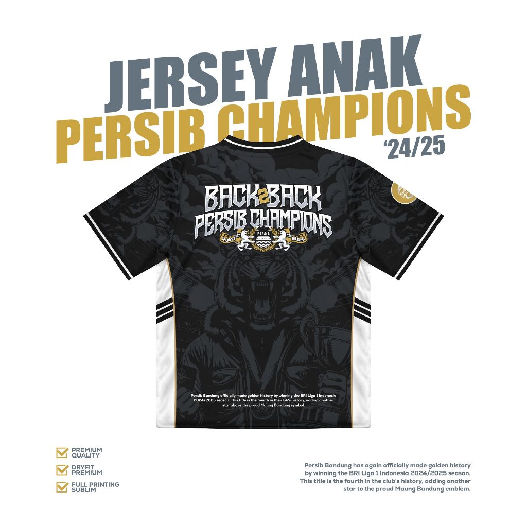 [Star]FORCEFIT KAOS JERSEY ANAK PERSIB CHAMPIONS 2024/2025 TERBARU JERSEY CASUAL VINTAGE RETRO