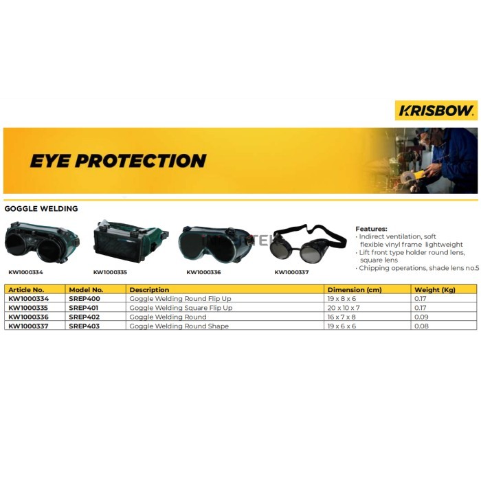 KACAMATA LAS GOGGLE BULAT KRISBOW SREP400 SAFETY FLIP UP EYE PROTECTION KACA MATA WELDING PELINDUNG KERJA ORIGINAL