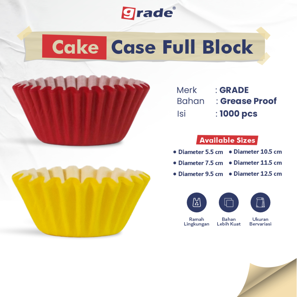 GRADE CUP CAKE PAPER CASE GREASEPROOF FULL BLOCK KERTAS TEMPAT KUE BOLU KUKUS 1 PACK ISI 1000 PCS