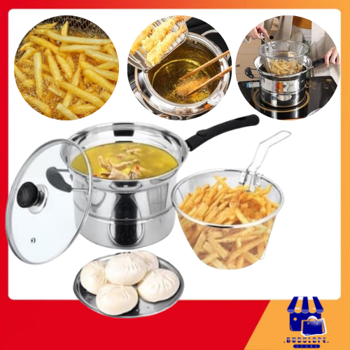 PANCI SUSU DEEP FRYER GORENG KUKUS MASAK STEAMER SARINGAN MULTIFUNGSI 3IN1 22CM