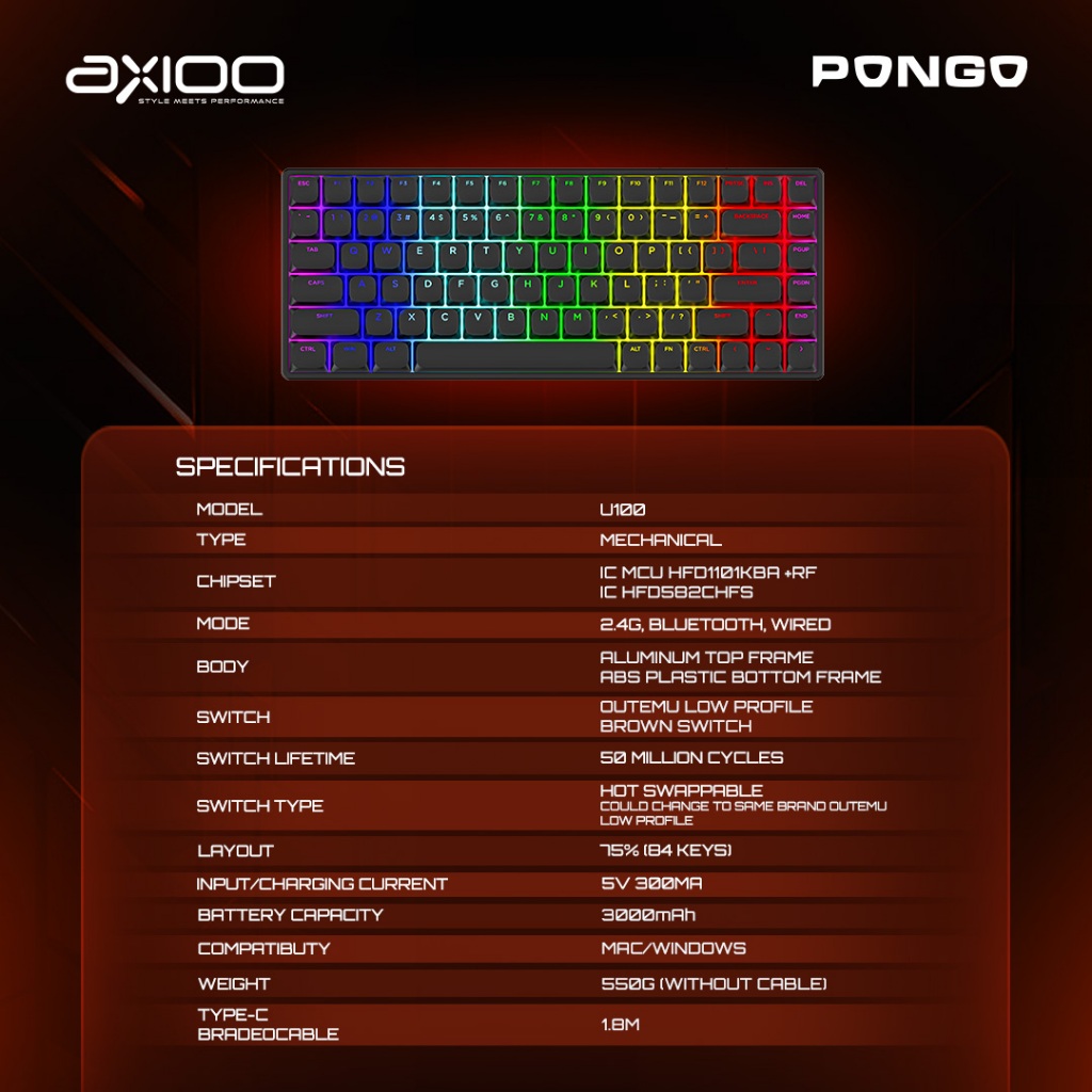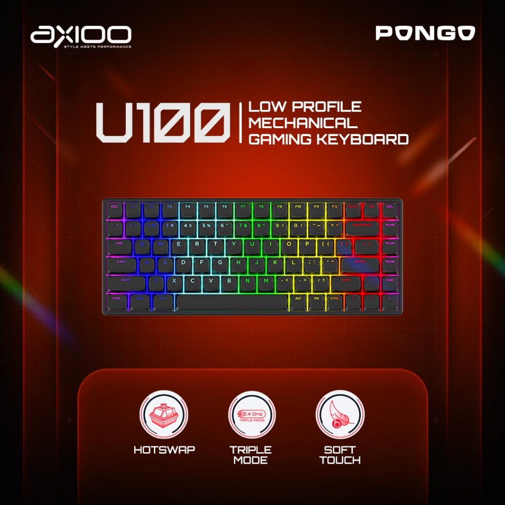 PONGO U100 KEYBOARD GAMING TRIPLE MODE - 75 PERSEN MECHANICAL OUTEMU LOW PROFILE BROWN SWITCH