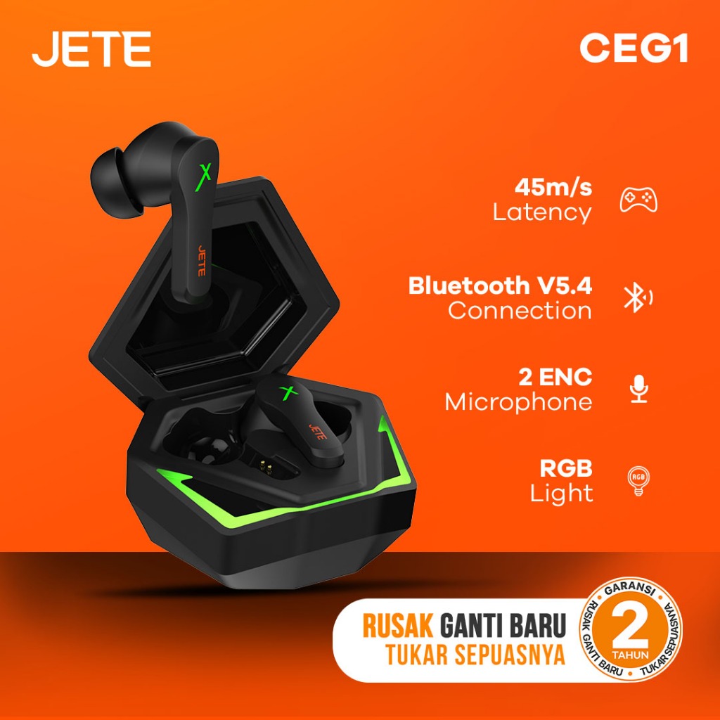 JETE CEG1 TWS EARBUDS GAMING HEADSET WIRELESS BLUETOOTH 5.4 PLAYTIME 24H IPX5 ENC RGB - GARANSI ORIGINAL OFFICIAL STORE