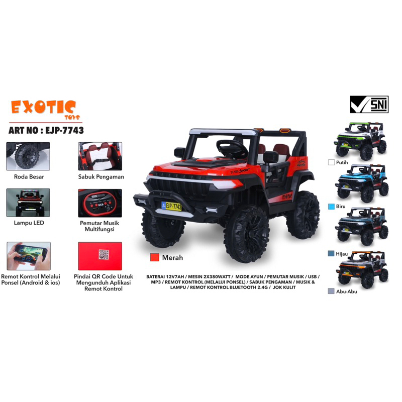 [Mall] MOBIL AKI ANAK JUMBO BAN KARET MOBIL AKI ANAK EXOTIC EJP7743 EJP-7743 CAS CHARGE REMOTE MOBIL AKI MAINAN ANAK