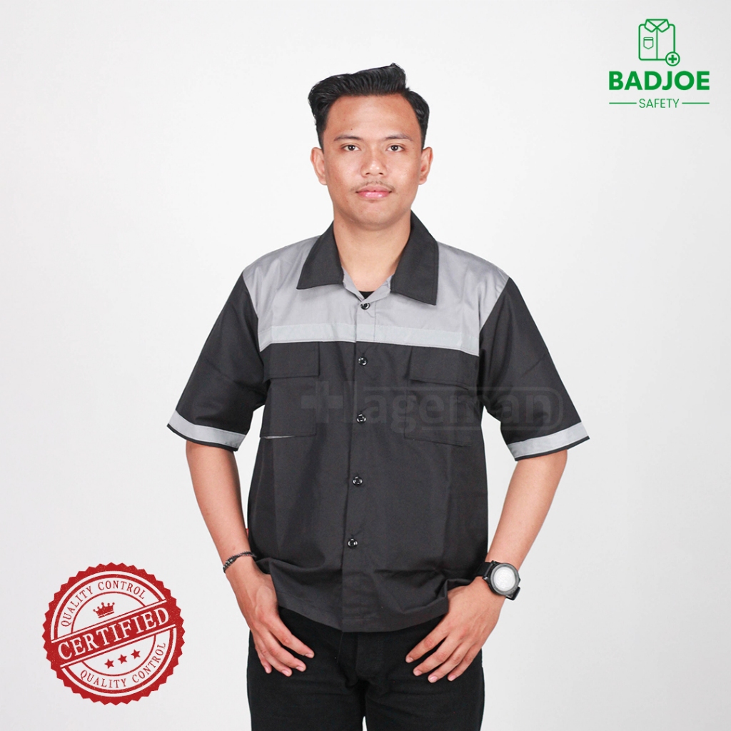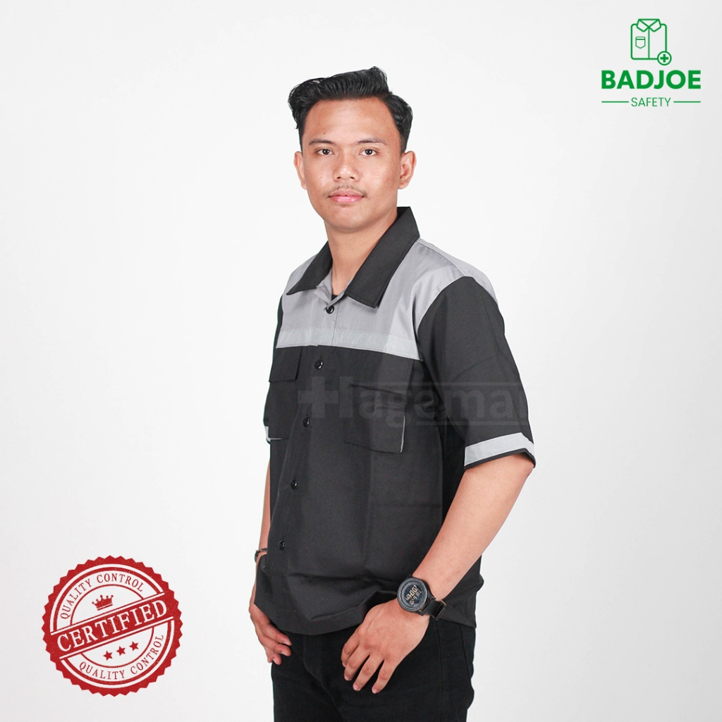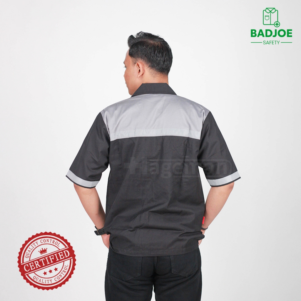Wearpack Lengan Pendek / Baju Wearpack Safety Lengan Pendek Warna Hitam Kombinasi Abu