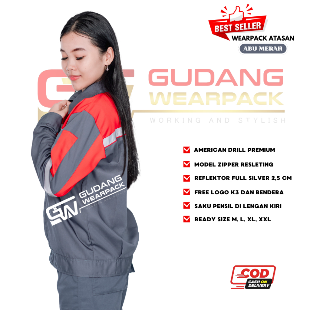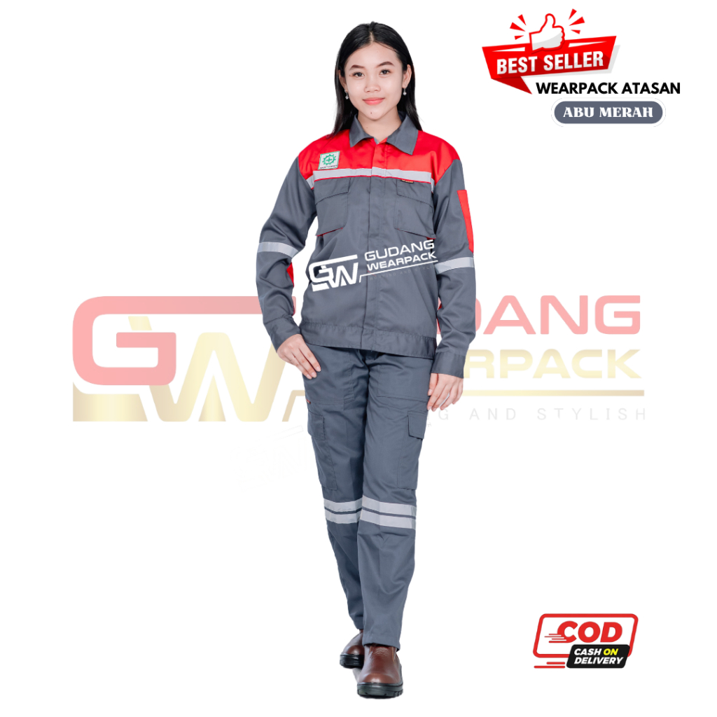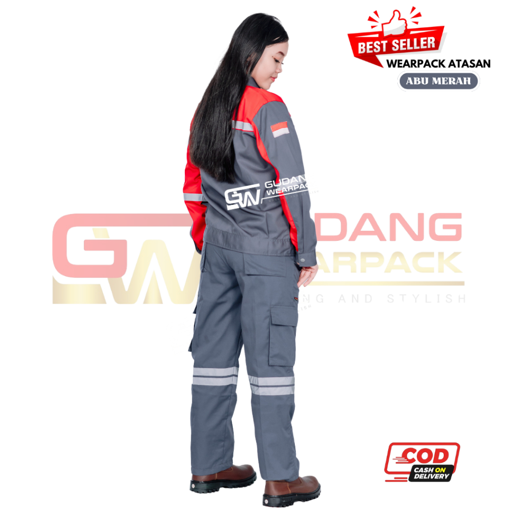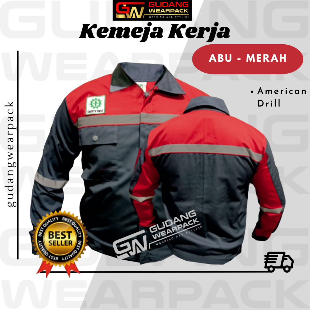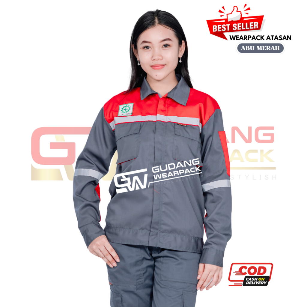 WEARPACK ATASAN Gudang Wearpack - Baju Kerja Seragam Proyek Warna ABU - MERAH