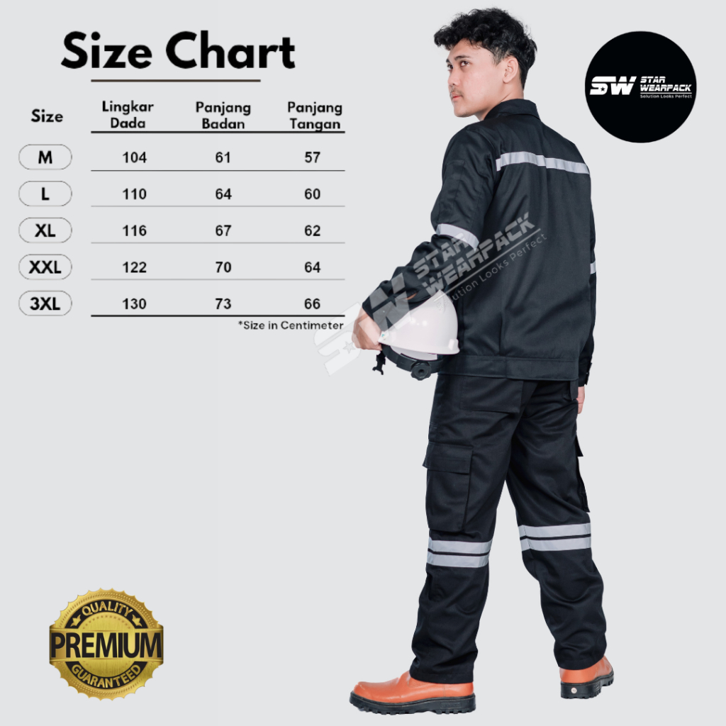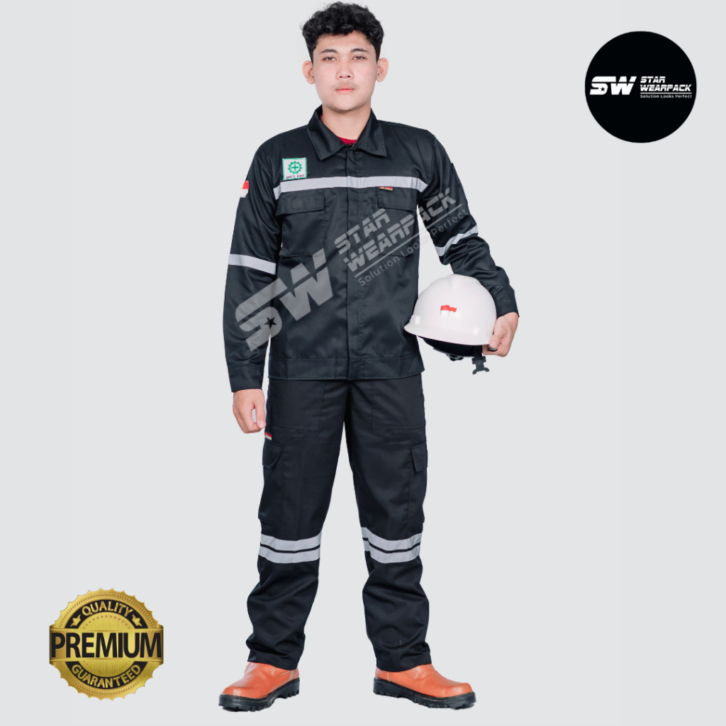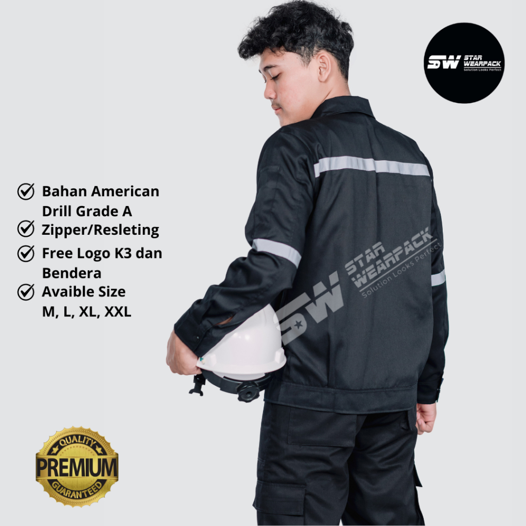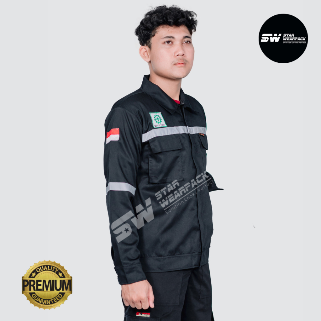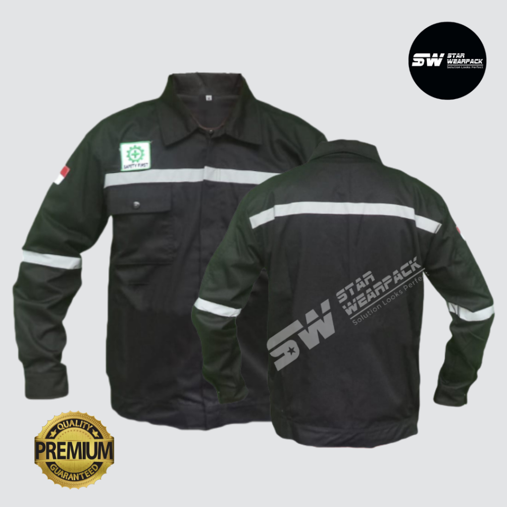 Wearpack Safety Seragam Kerja Proyek Resleting Lengan Panjang Warna Hitam Polos - Star Wearpack