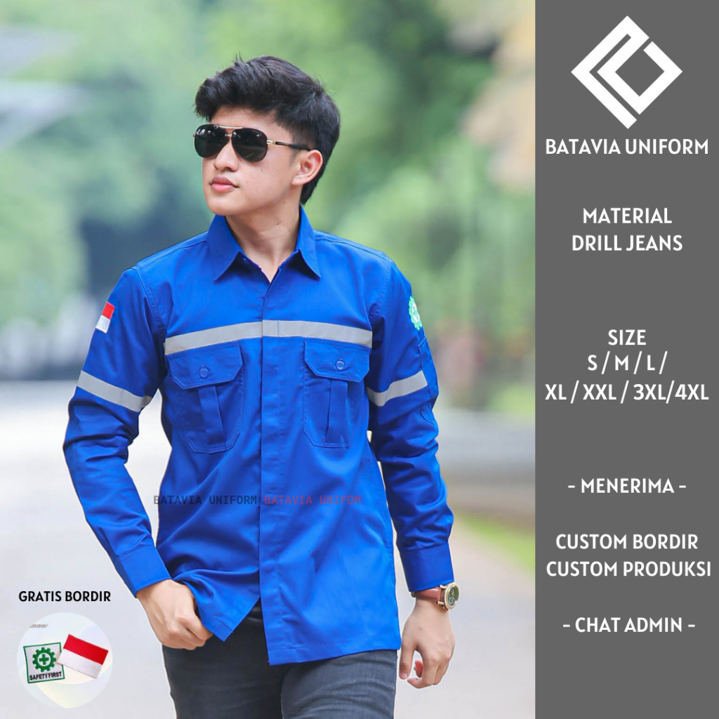 Wearpack Kemeja Safety K3 Lengan Panjang Pria Seragam Kerja Lapangan Werpack Werpak Proyek Tambang Batu Bara Bisa Custom