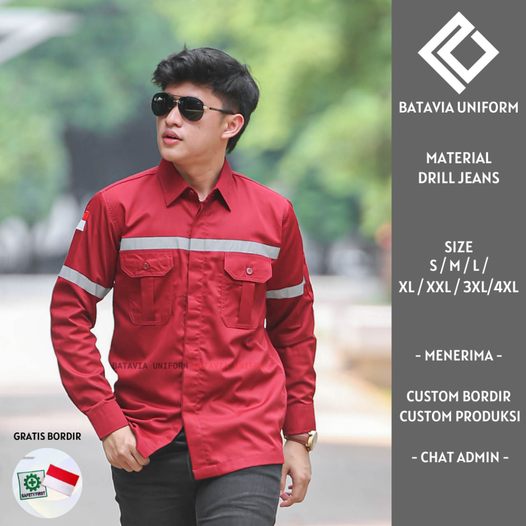 Wearpack Baju Kemeja Safety K3 Lengan Panjang Pria - Seragam Kerja Werpack Lapangan Proyek Tambang Bisa Custom