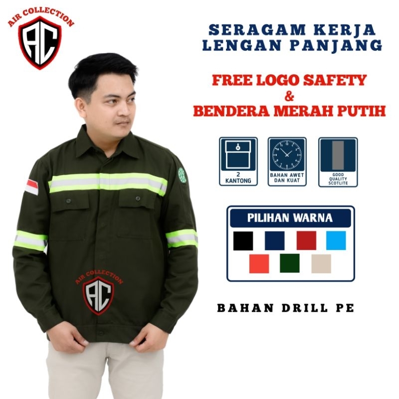 AC - Baju Safety Lengan Panjang Seragam Kerja Proyek Kemeja Safety Premium