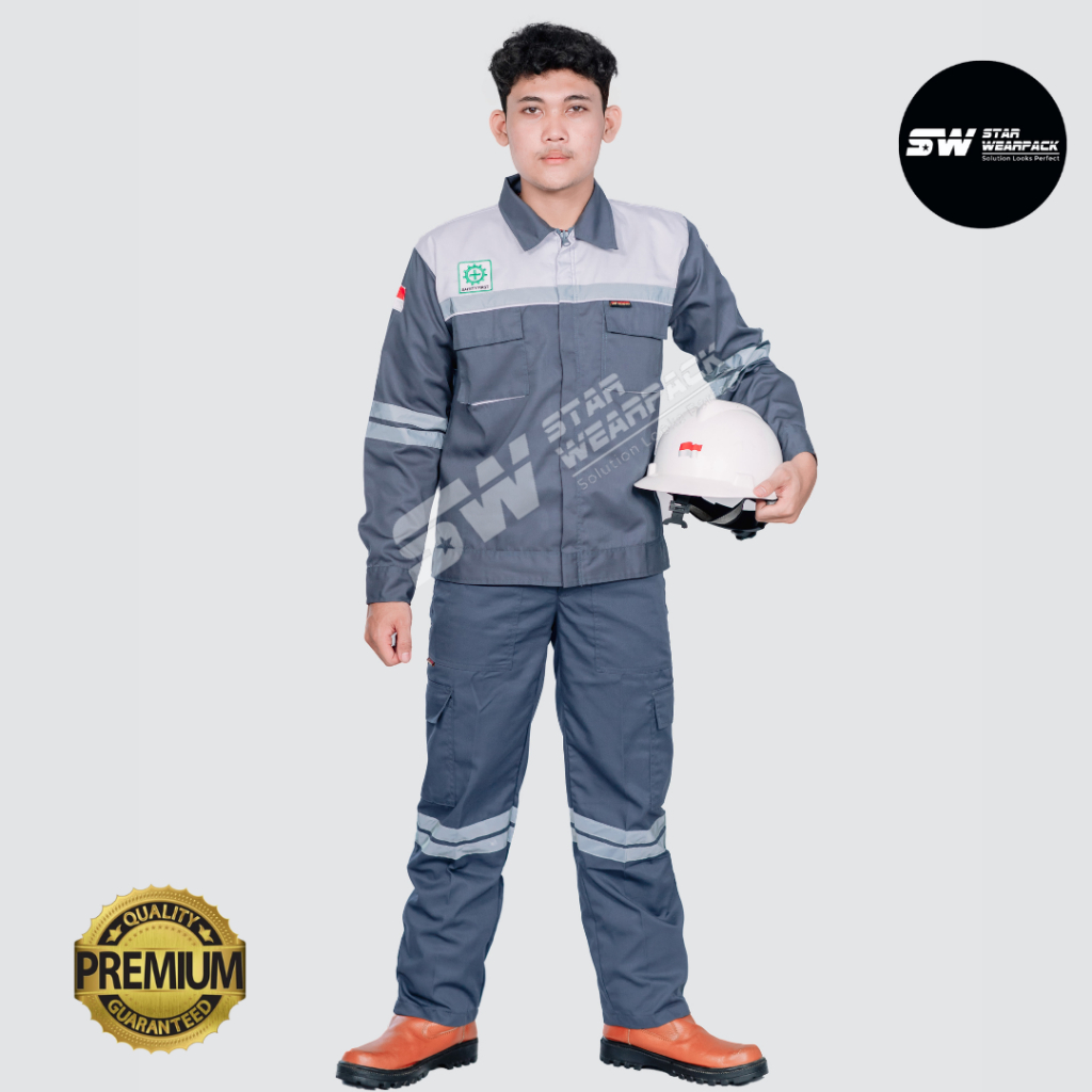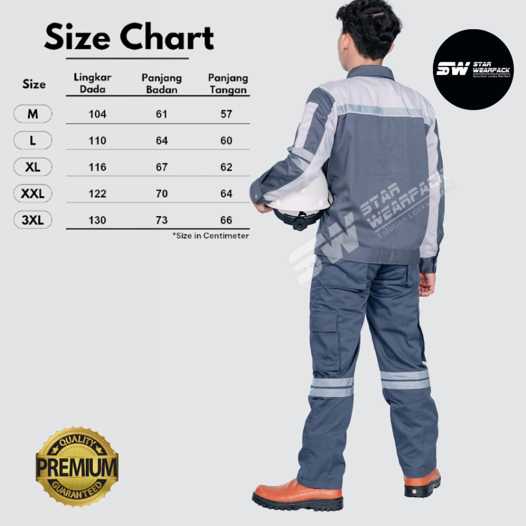 Star Wearpack - Baju Seragam Proyek Kerja Lapang Warna Abu Kombinasi Putih