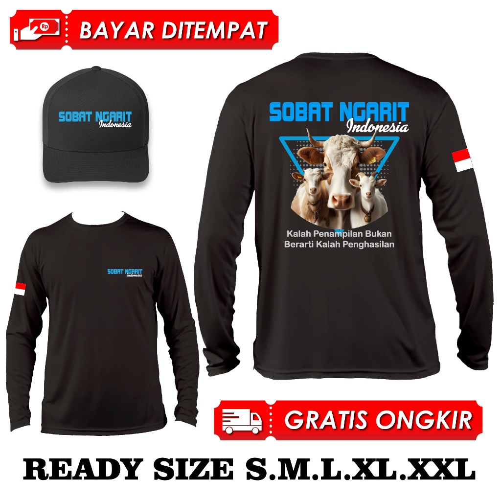 KAOS SOBAT NGARIT SAPI DAN KAMBING BIRU LENGAN PANJANG BONUS TOPI