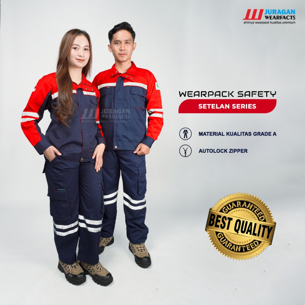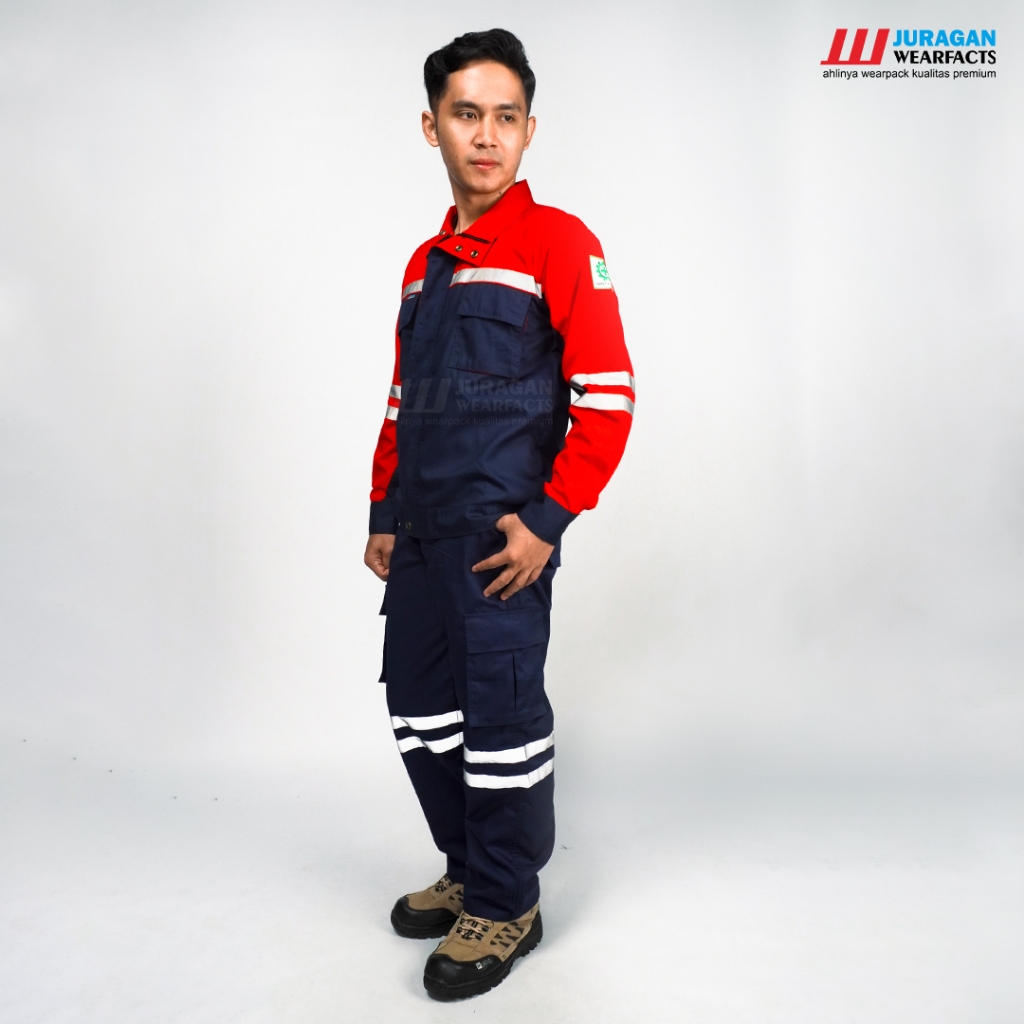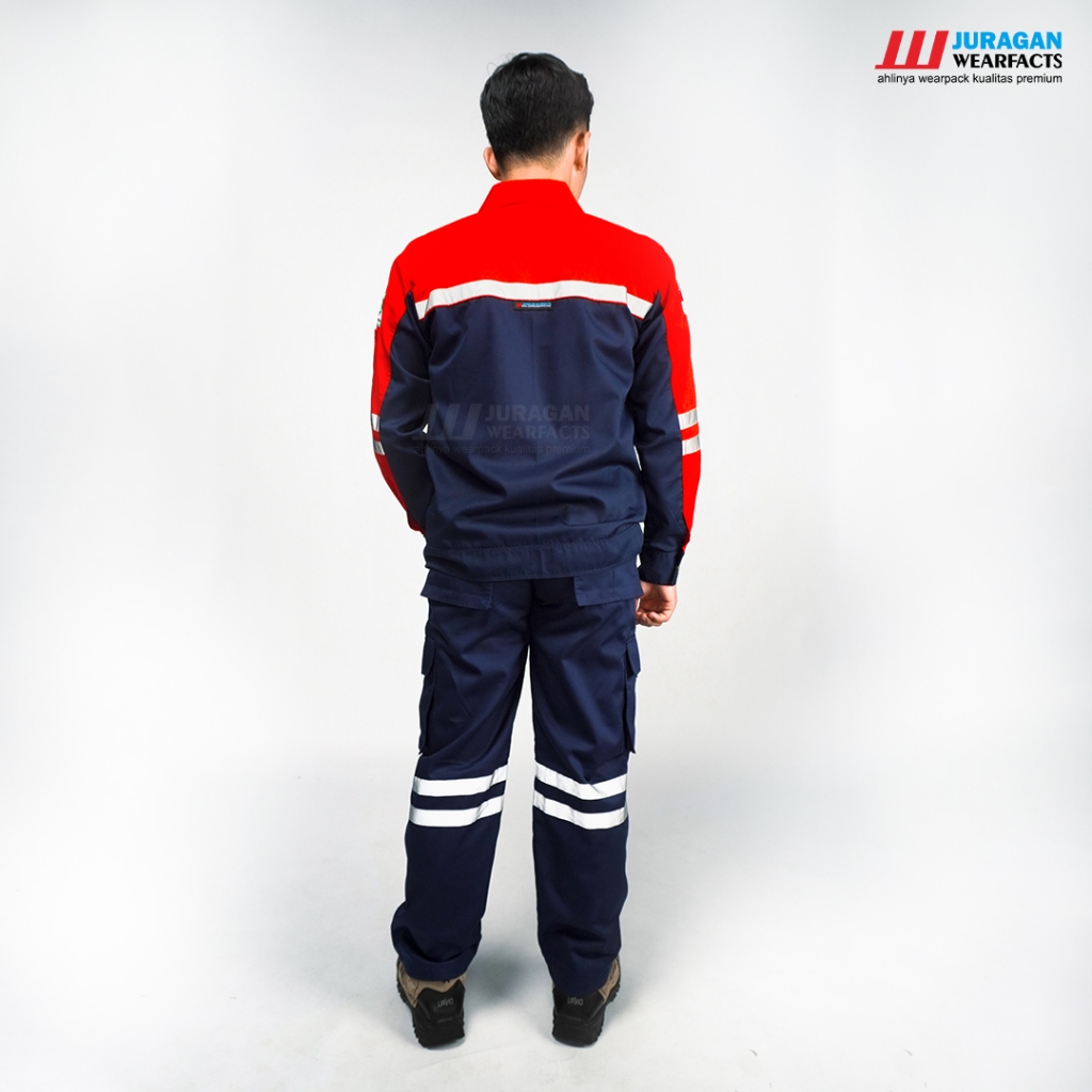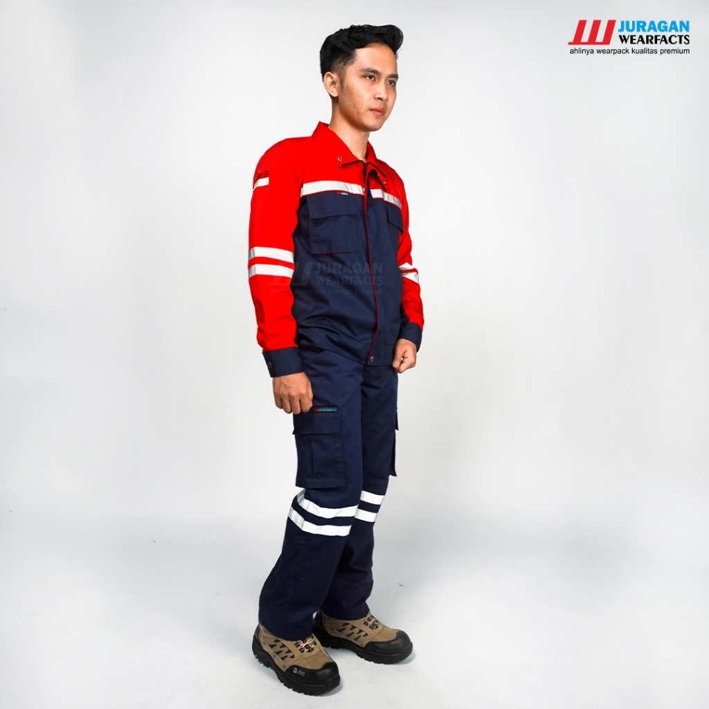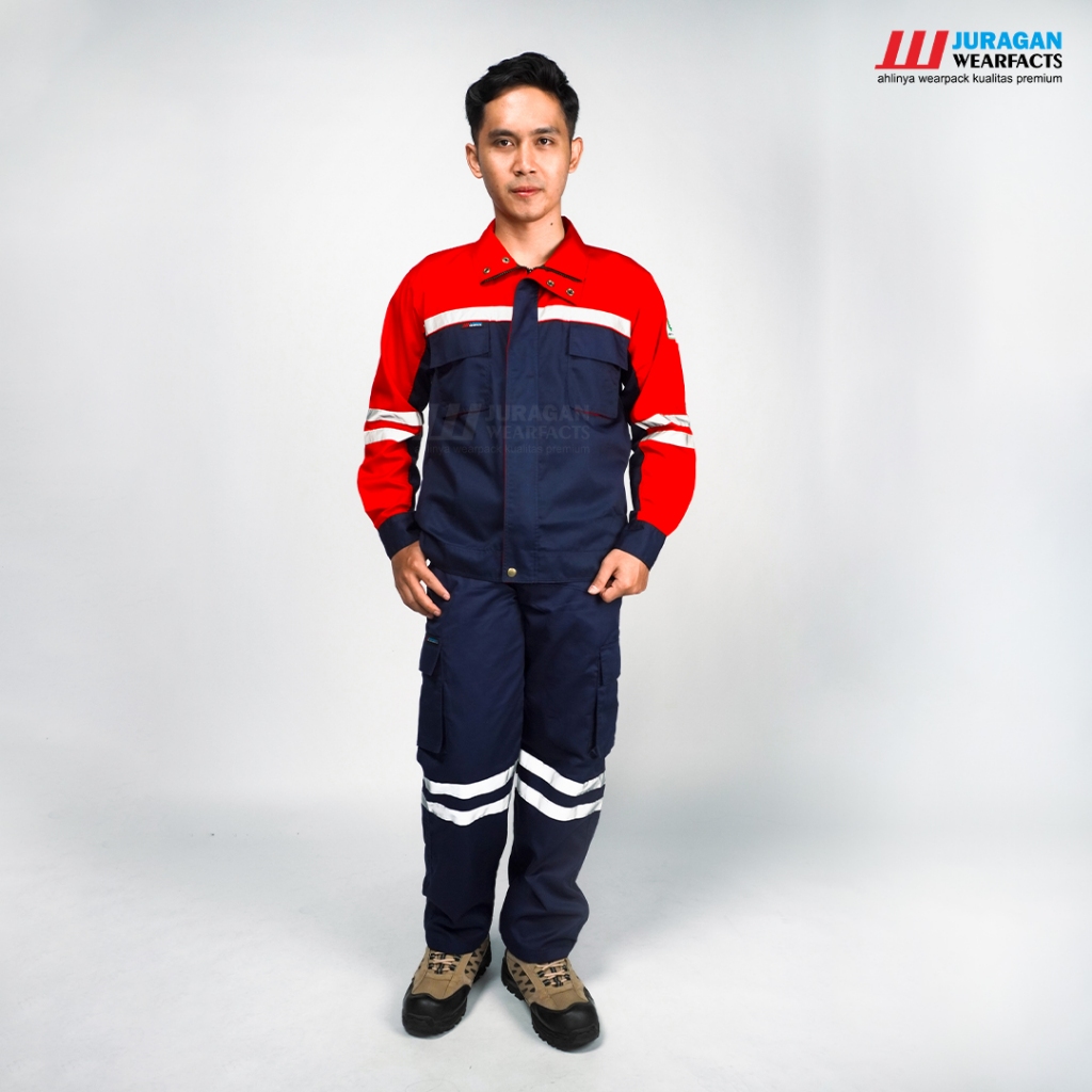 Juragan Wearfacts - Wearpack Safety Setelan Atasan Warna Merah Bawahan Biru Navy