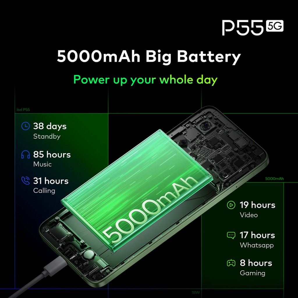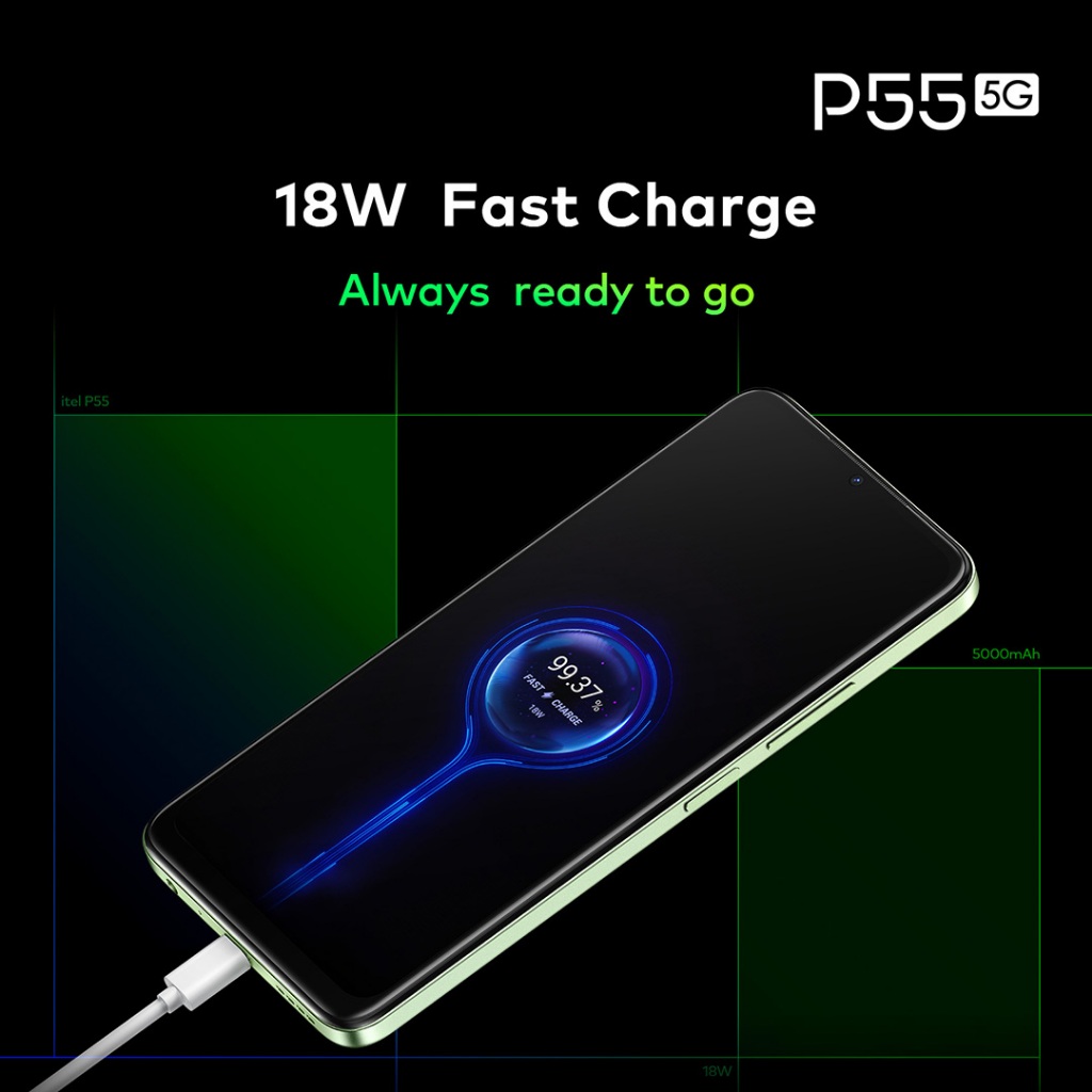 [Hot] itel P55 5G RAM 6+128GB - 5G Network - 50M Dual Clear Cam - 18W Fast Charging- 5000mAh Battery