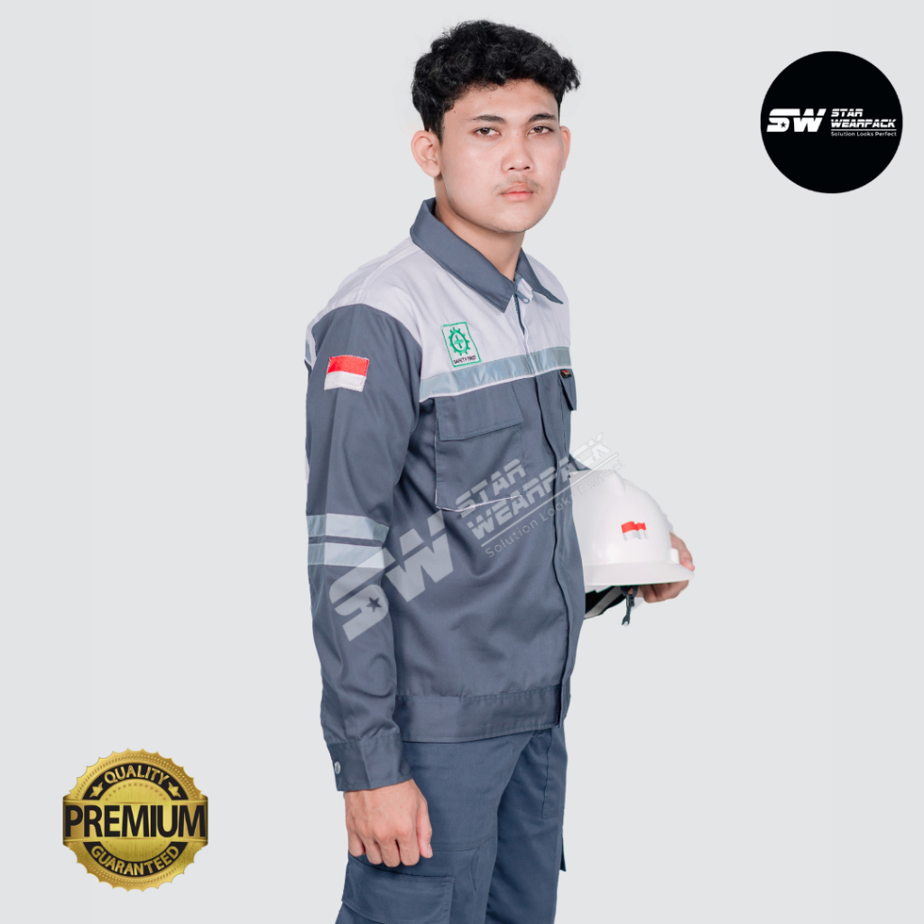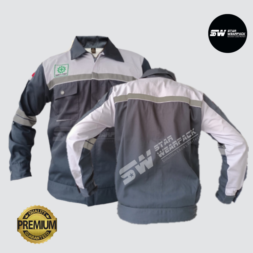 Star Wearpack - Baju Seragam Proyek Kerja Lapang Warna Abu Kombinasi Putih