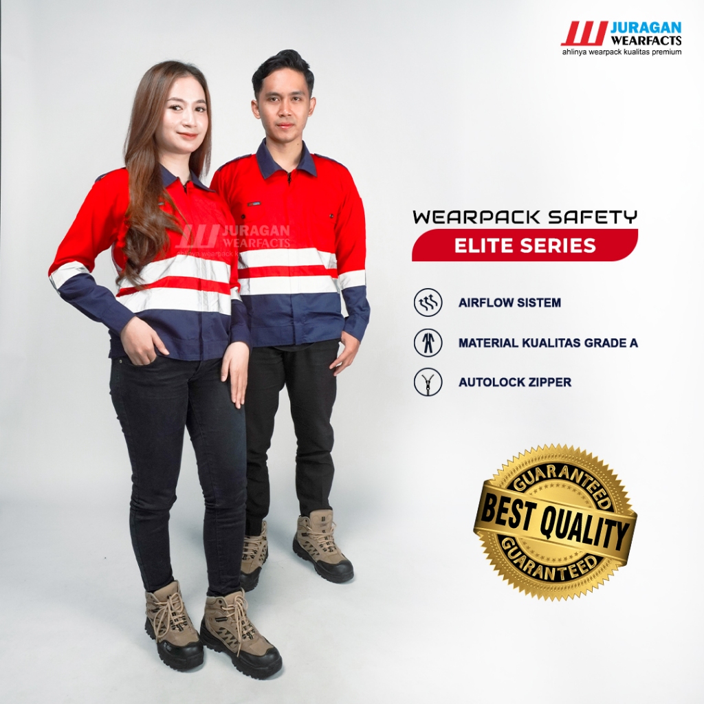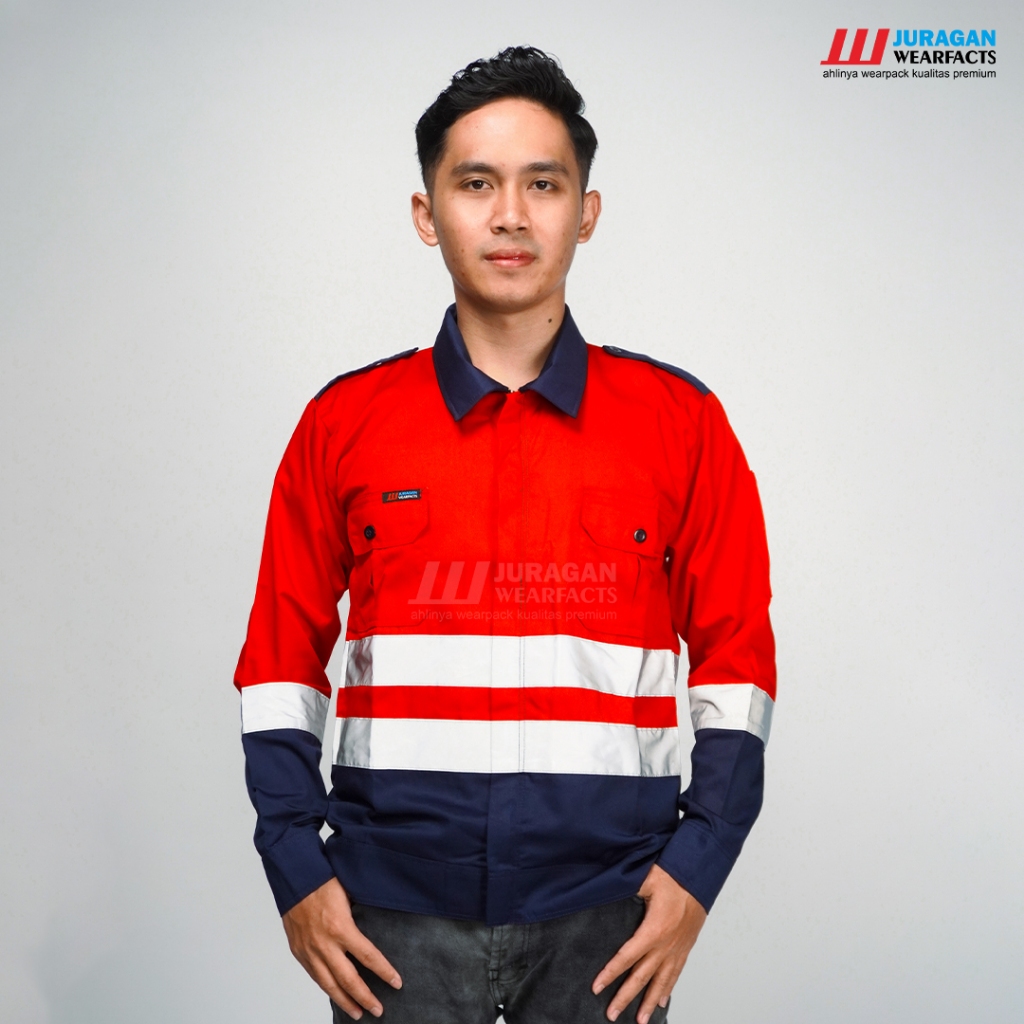 Juragan Wearfacts - Baju Wearpack Safety Model Elite Warna Merah Kombinasi Biru Navy