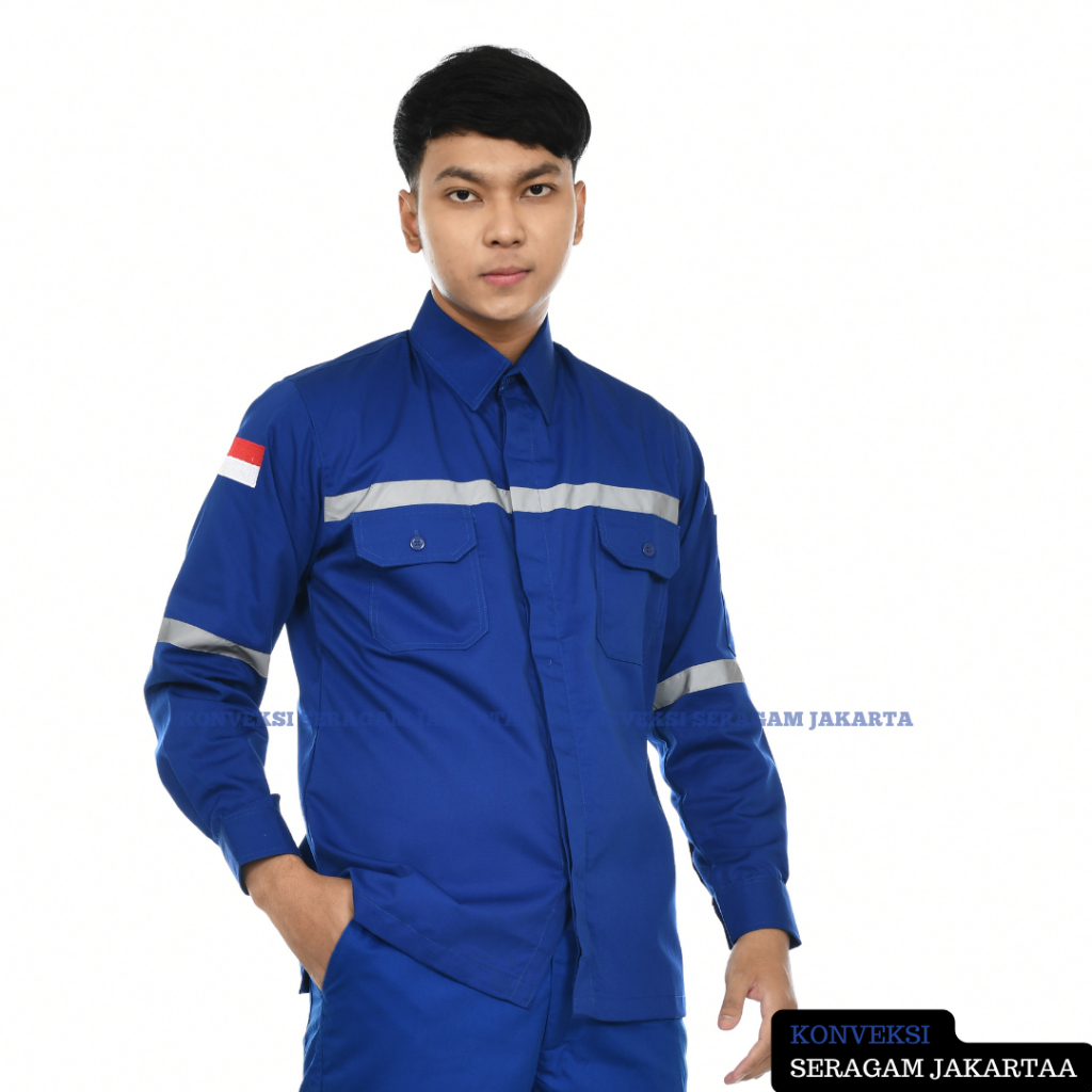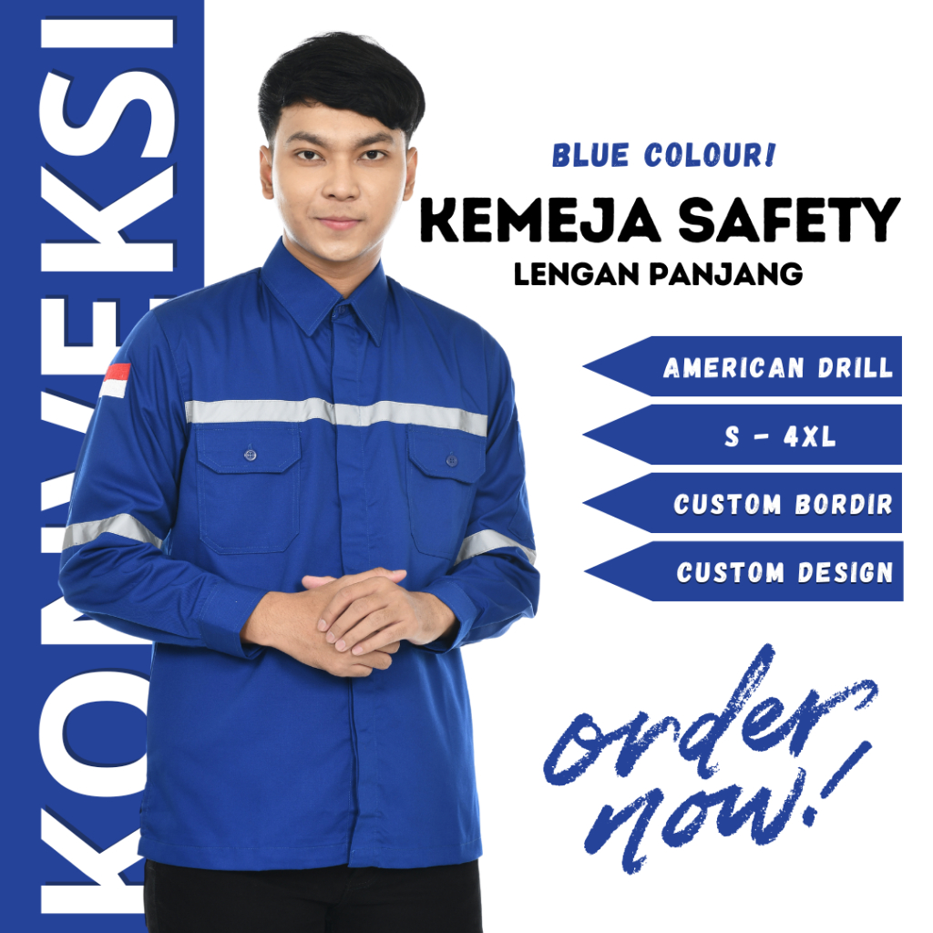 Baju Kemeja Safety K3 Lengan Panjang - Seragam Kerja Atasan Wearpack Werpack Werpak Proyek Tambang Warna Biru Benhur Pria Wanita - Konveksi Seragam Jakarta