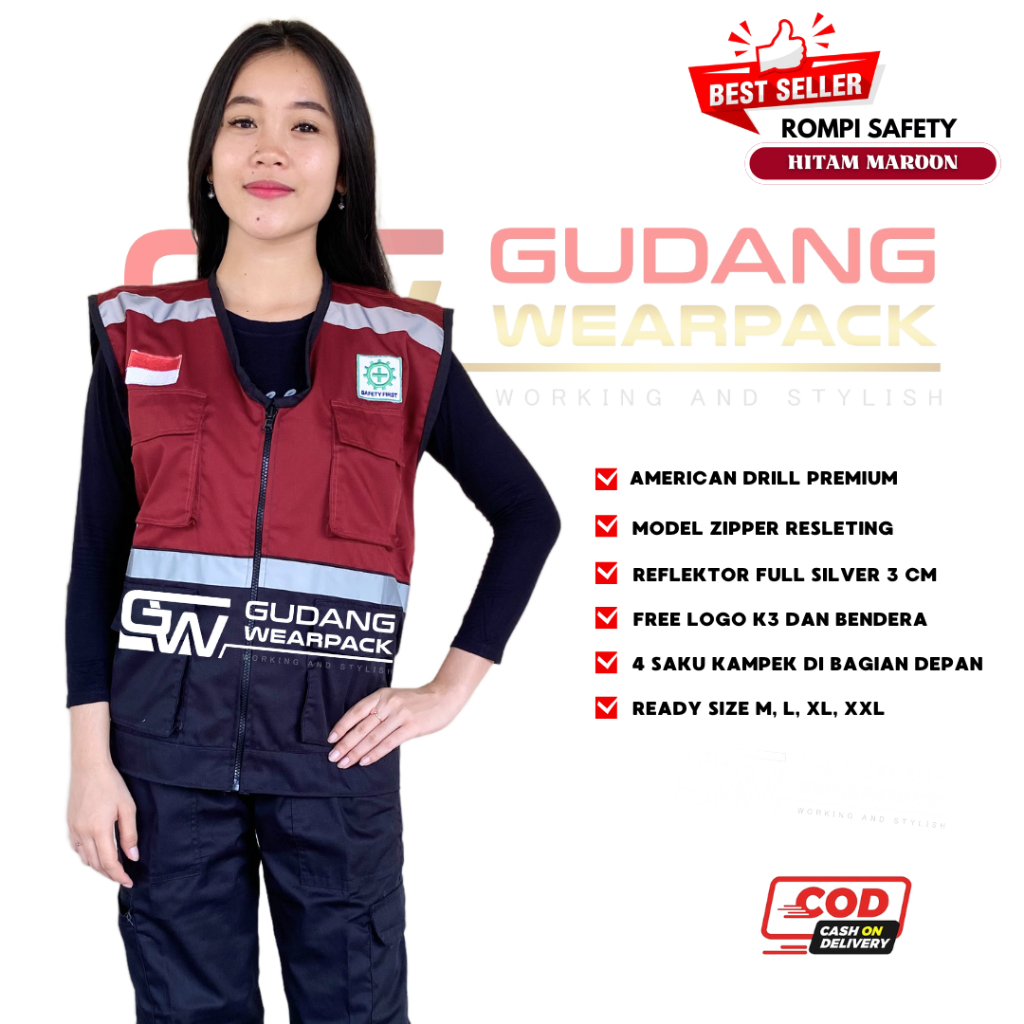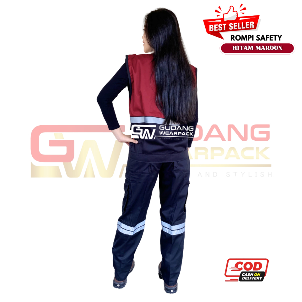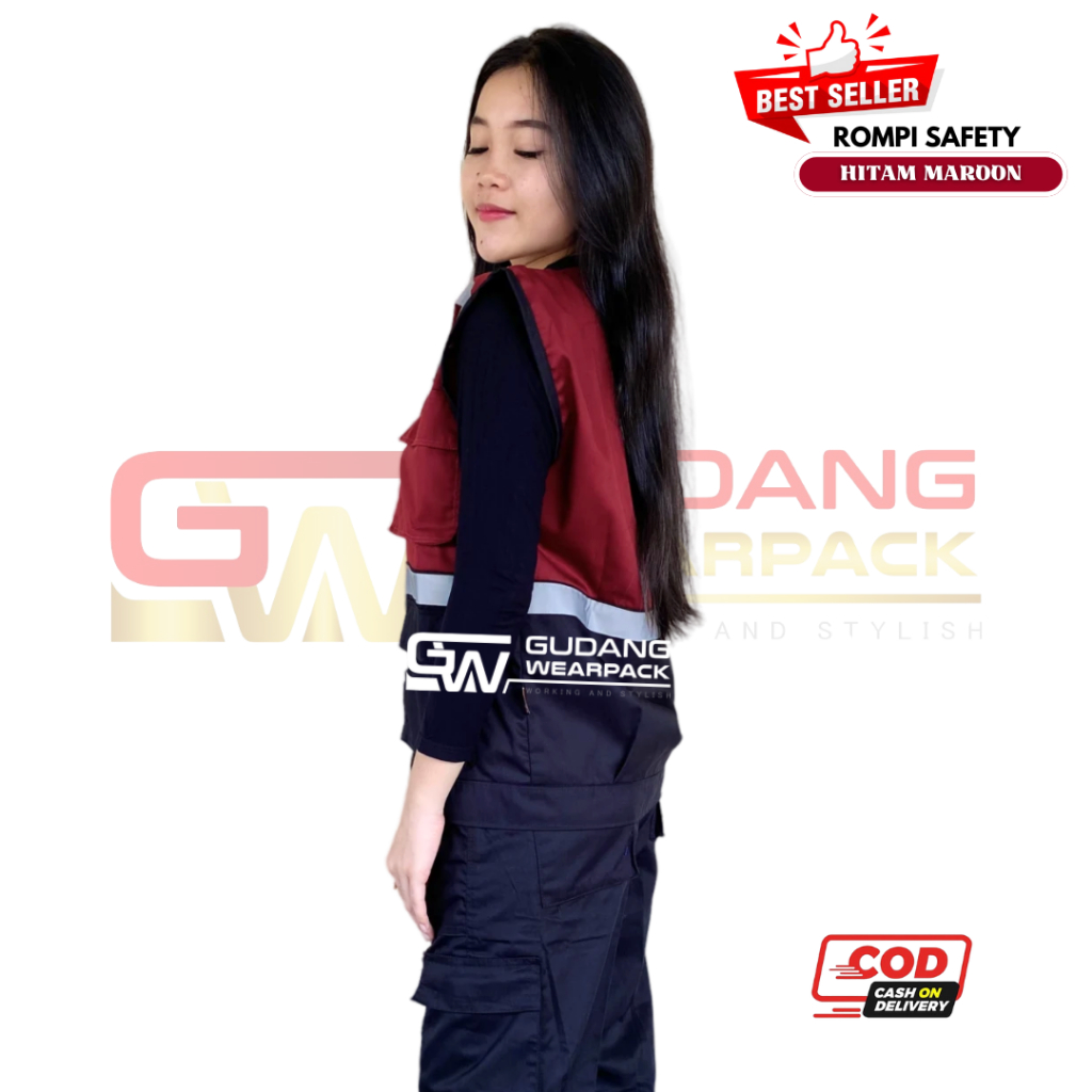ROMPI SAFETY Gudang Wearpack - Warna HITAM Kombinasi MERAH MAROON