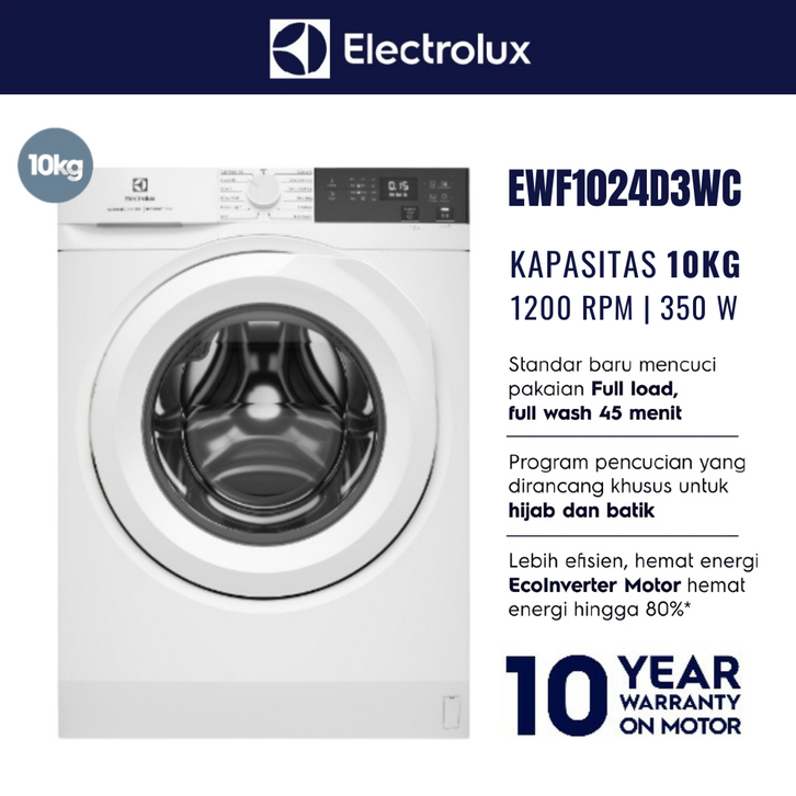 MESIN CUCI ELECTROLUX FRONT LOADING 10KG 9KG 8KG 350 WATT ECO INVERTER MESIN LAUNDRY PINTU DEPAN KAPASITAS 10 9 8 KG