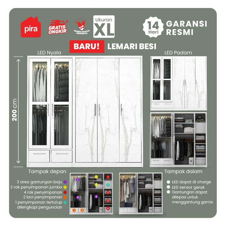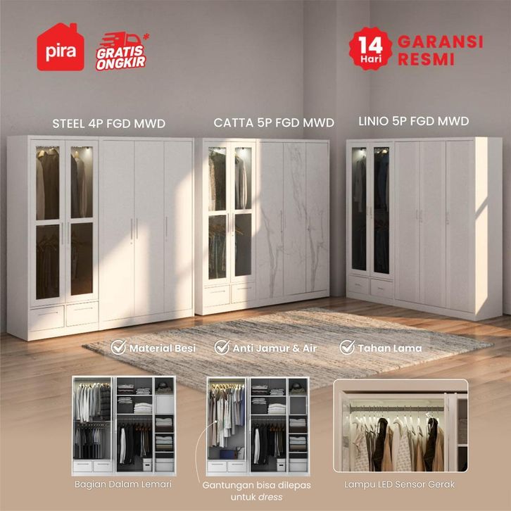 PIRA METROPOLIS CATTA 5P FGD MWD LEMARI PAKAIAN 5 PINTU DENGAN LACI OFFICIAL SHOP STORE / HARAP MEMBACA DESKRIPSI !