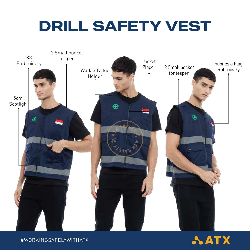 Rompi Safety Rompi Proyek Rompi Kerja Lapangan Bahan Drill Outerwear Merk ATX