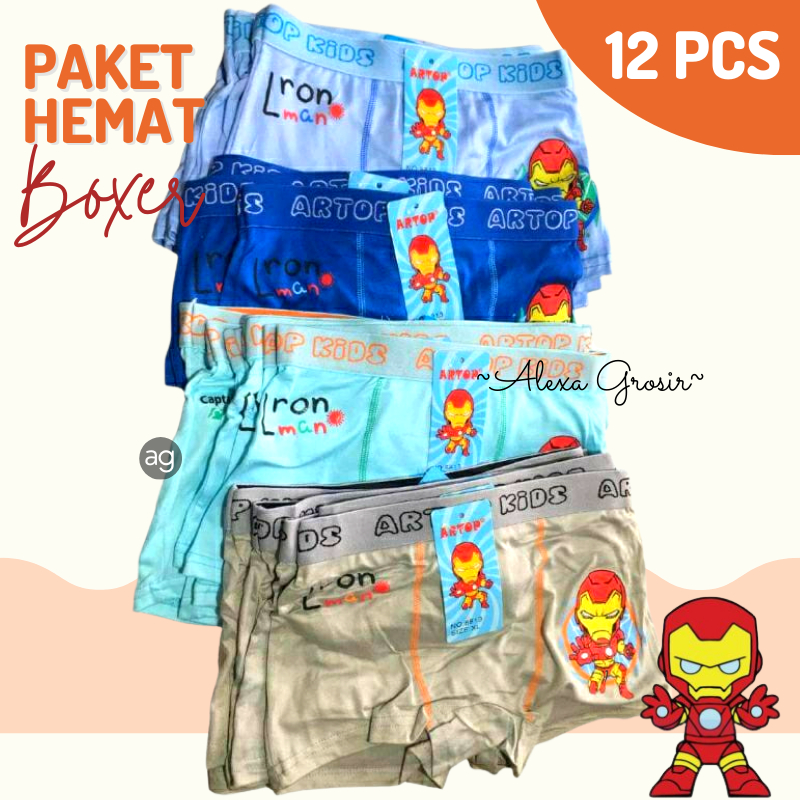 12 PCS CD Sempak Celana Dalam Boxer Anak Laki Laki Cowok Lusinan Murah Artop Kids Import Spandex Lembut Motif Kartun Luc