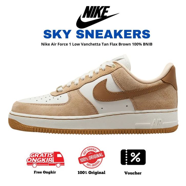 [Mall] SEPATU SNEAKERS NIKE ORIGINAL AIR FORCE 1 LOW VANCHETTA TAN FLAX BROWN 100% BNIB GOLBAL MARKET SNEAKERS PRIA
