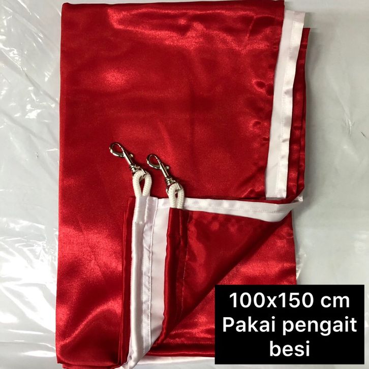 Bendera merah putih 100 x 150 cm satin pakai pengait besi