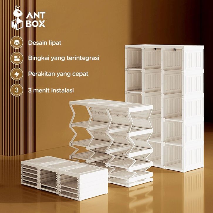 ANTBOX Lemari Pakaian 6 Box - 14 Box 360L- 890L Lemari Baju Wardrobe Pintu Transparan Kabinet Lipat Serbaguna Bebas