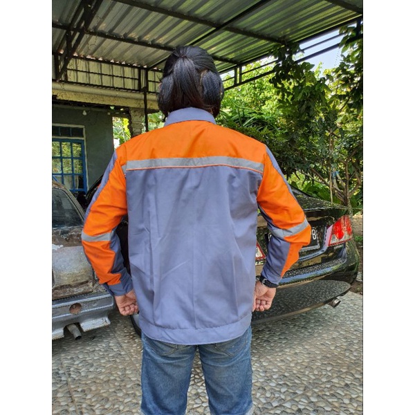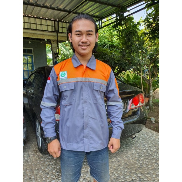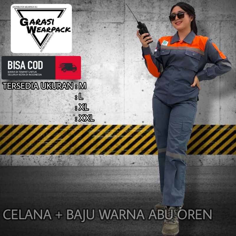 Baju dan Celana stelan/ pakaian kerja/ Proyek / Safety First/ K3/ abu oren