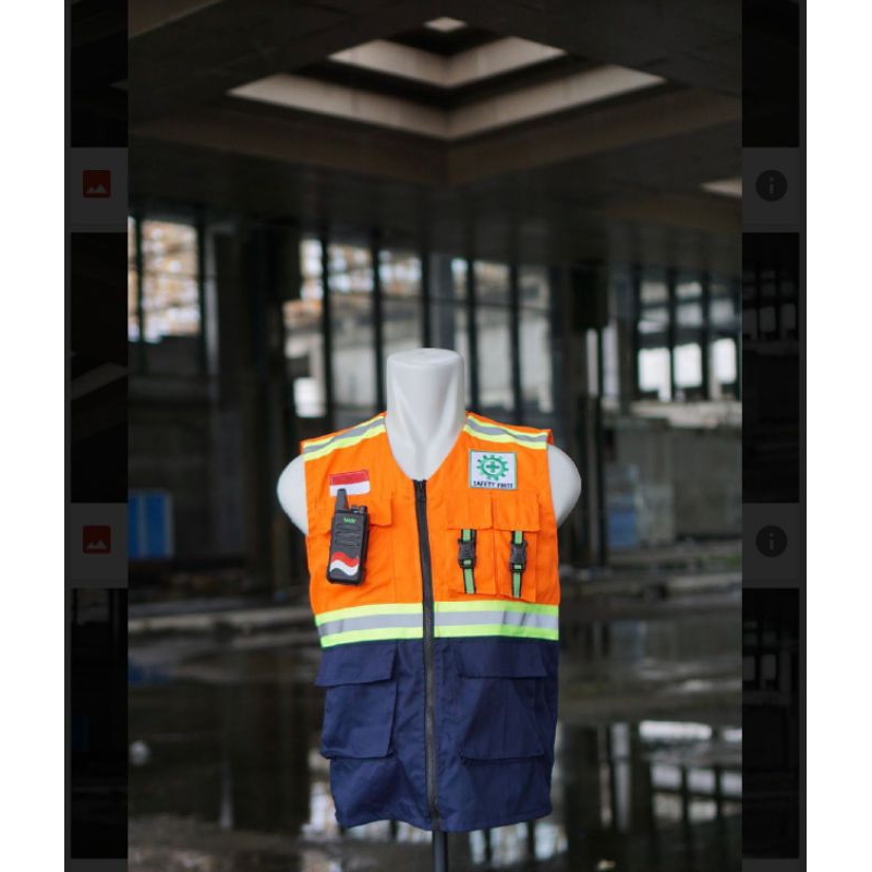 Rompi Safety/Rompi Proye/Rompi Tactical/Bahan Drill Warna Navy Kombinasi Merah XXL/Safety Vest Safety/Proyek/Tactical/Terbaru