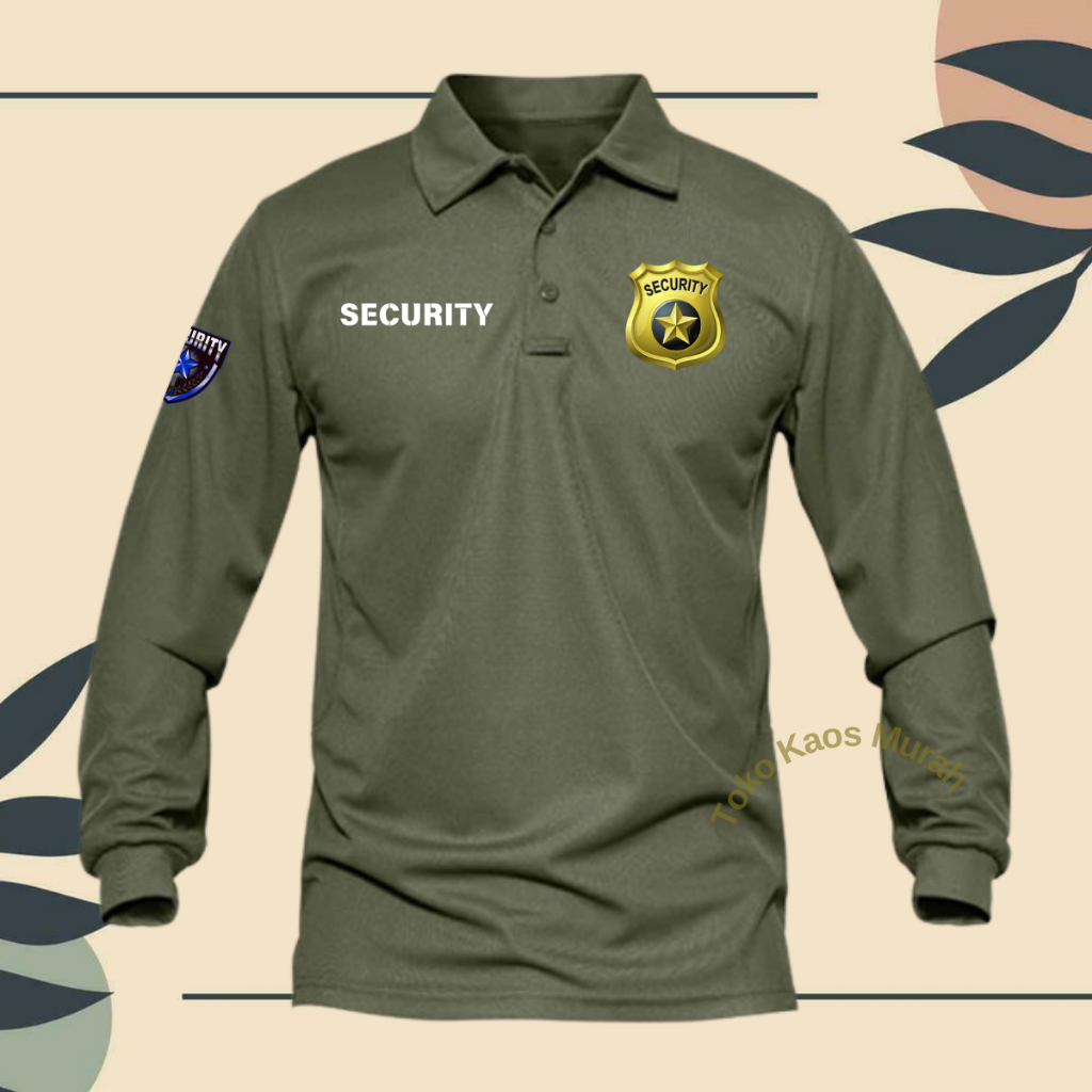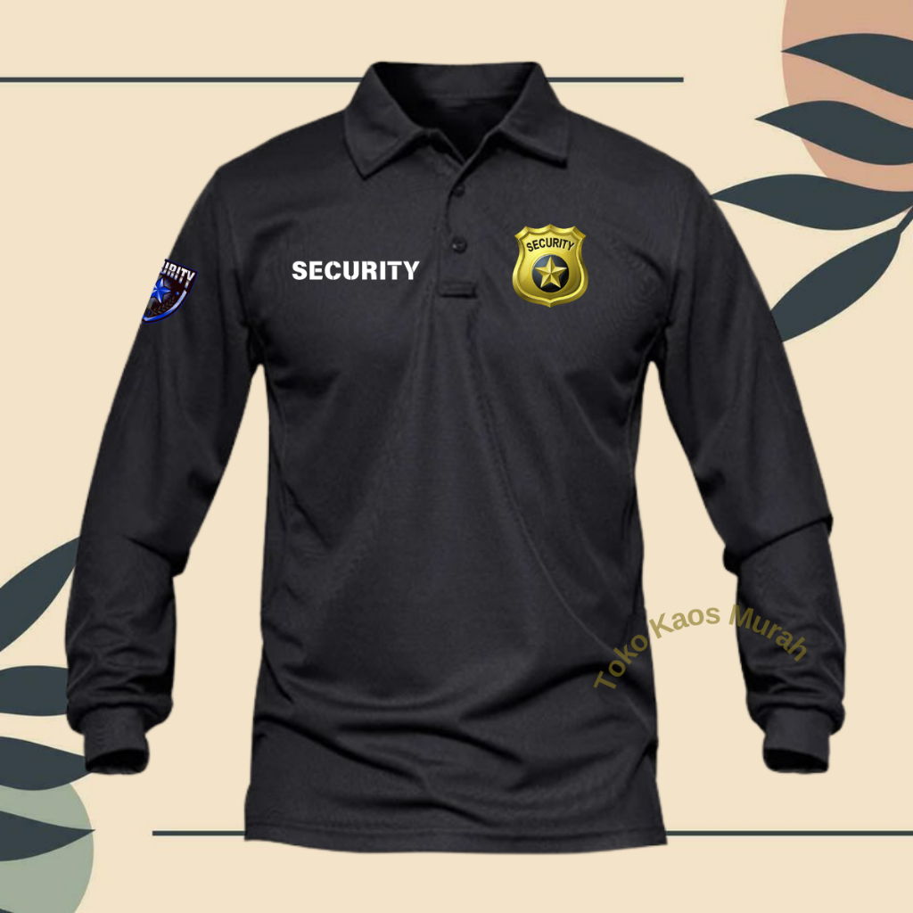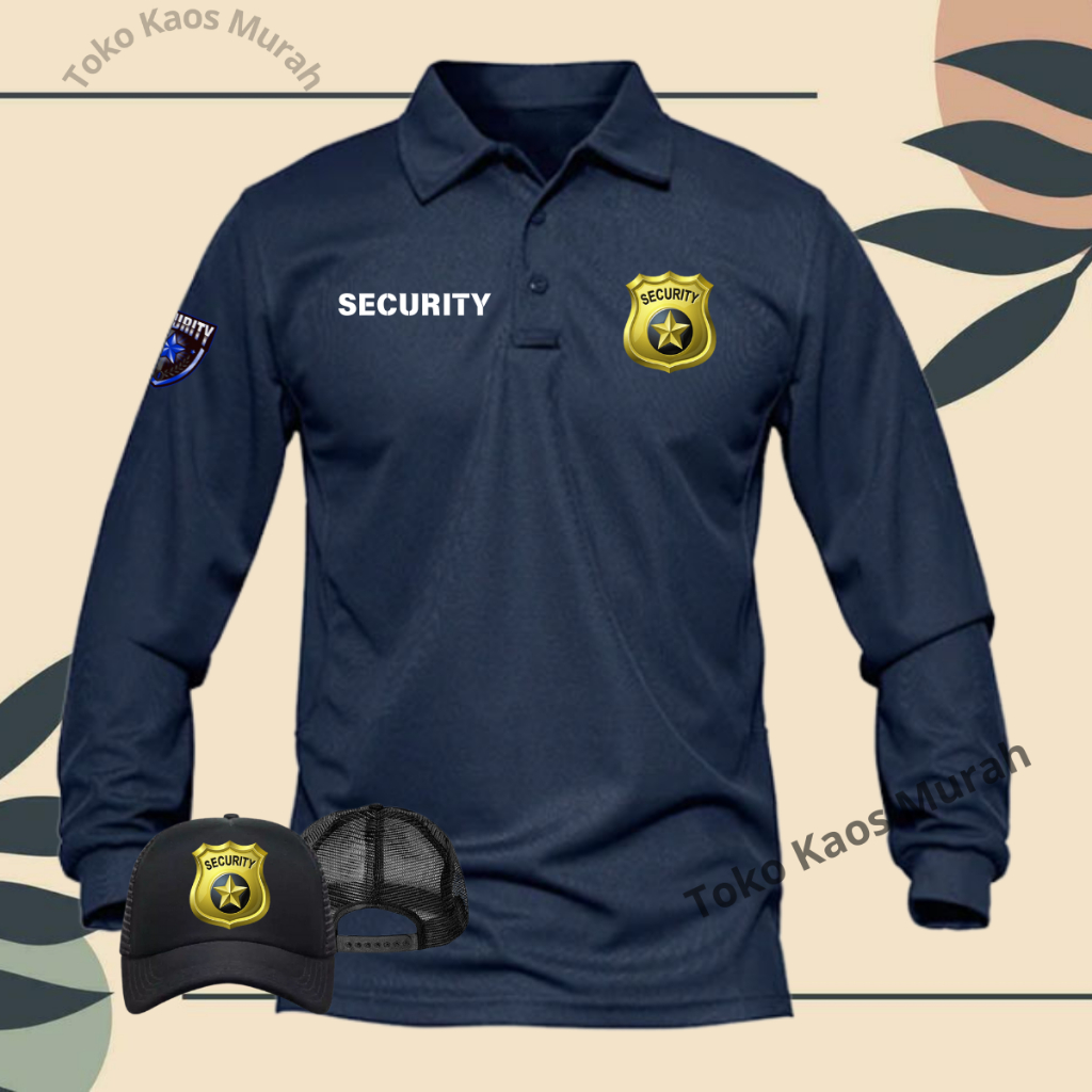 Bonus Topi Kaos Polo Shirt Lengan Panjang Security Logo Depan Dan Di Tangan Atasan Pria Dan Wanita Dewasa