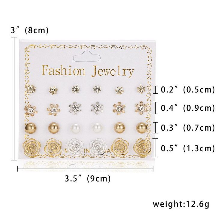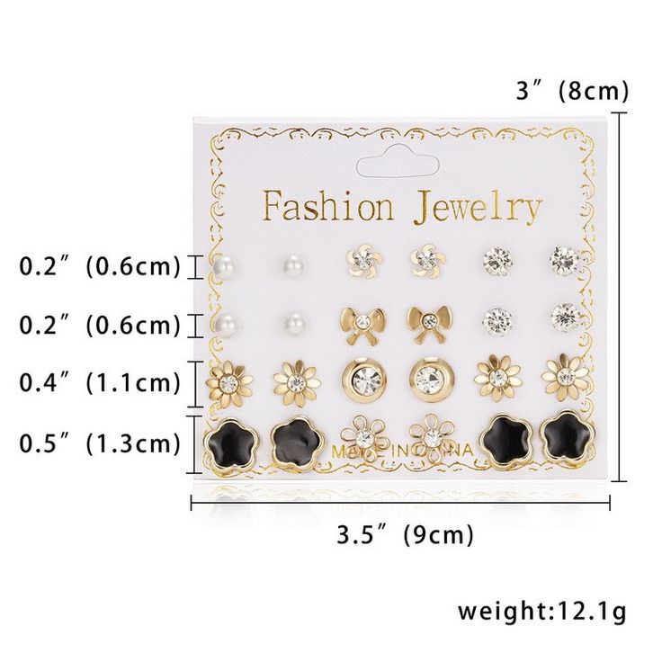 Anting Set 12 Pasang Anting Set Tusuk Model Mutiara Intan Bentuk Bulat Gaya Korea Anting Kekinian Simple