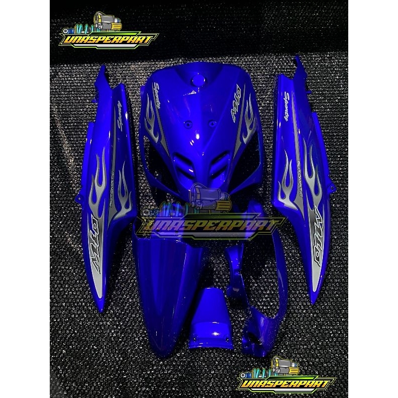 Cover full body halus yamaha mio sporty warna biru candy plus striping api transparan