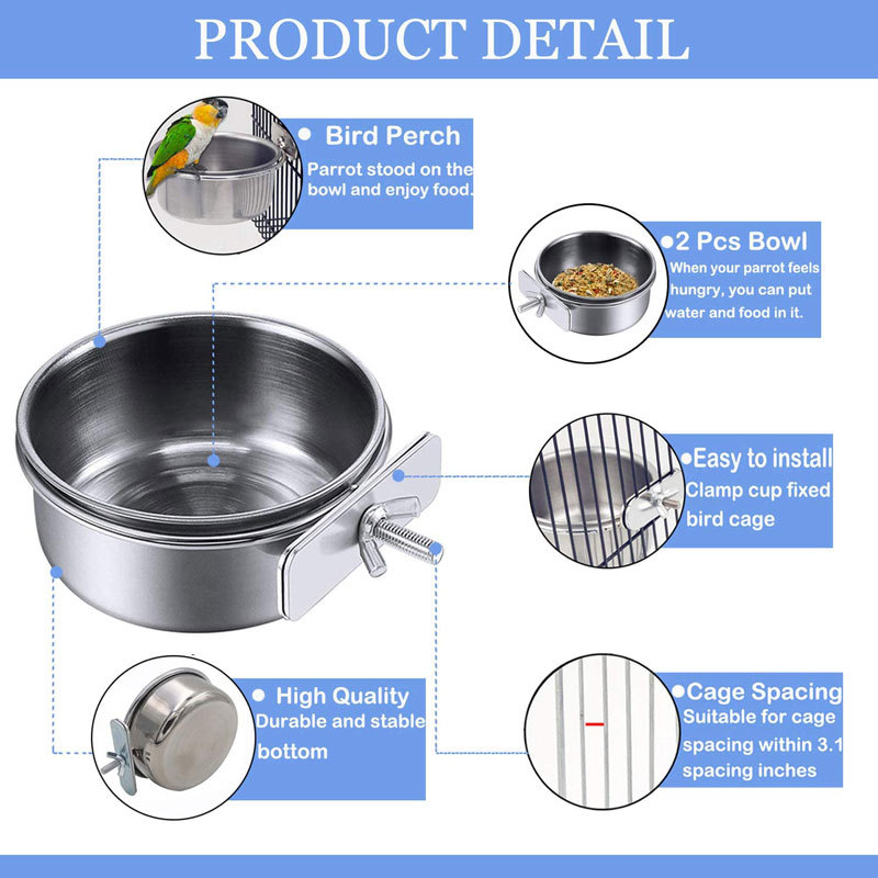 Tempat Makan Minum Burung Besi Tahan Karat / Cangkir Makanan Burung Tahan Tumpahan Multifungsi