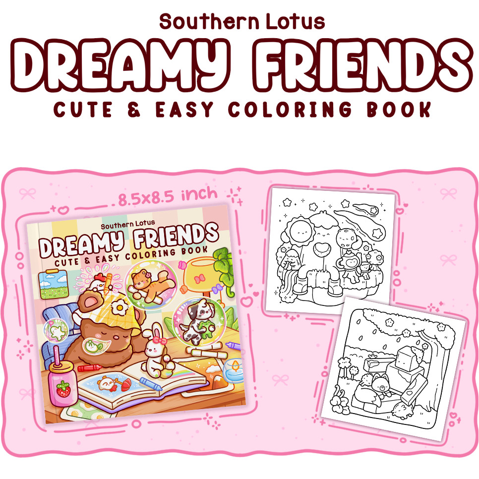 Dreamy friends,coloring book for marker,buku mewarnai aesthetic lucu,hadiah ulang tahun anak perempuan,40 ilustrasi,Buku