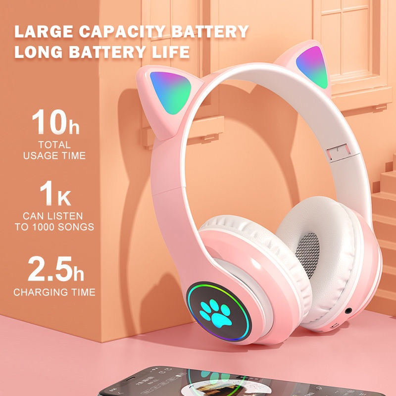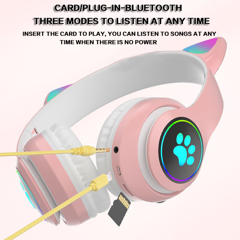 [Star]Bluetooth Cat Headphone Bluetooth 5.0 Headset Noise Cancelling Wireless Headphones With Mic HiFi Stereo Earphones
