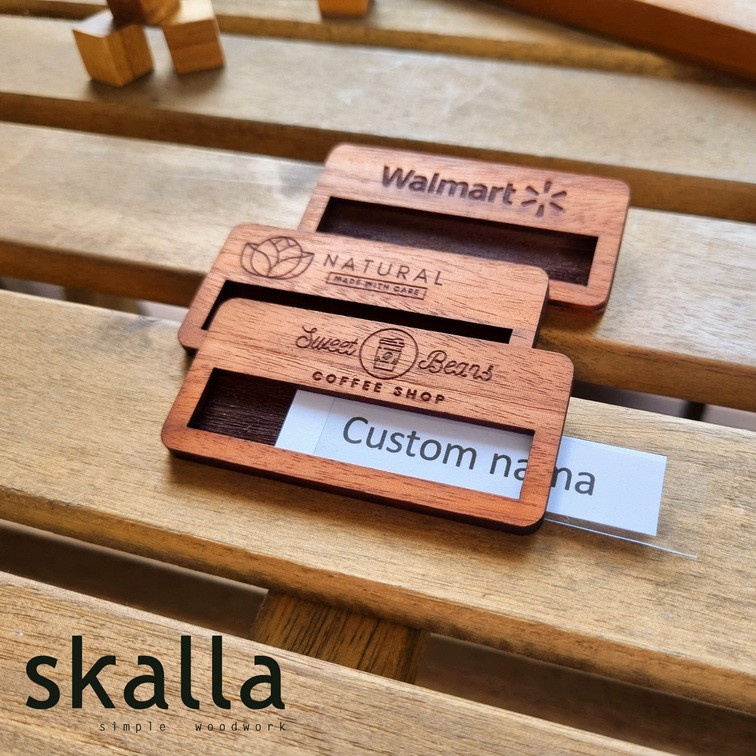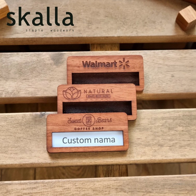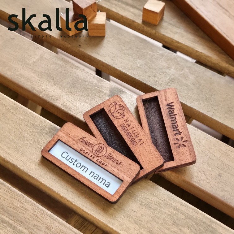 name tag reusable kayu badge papan nama dada wooden nametag custom dapat diganti